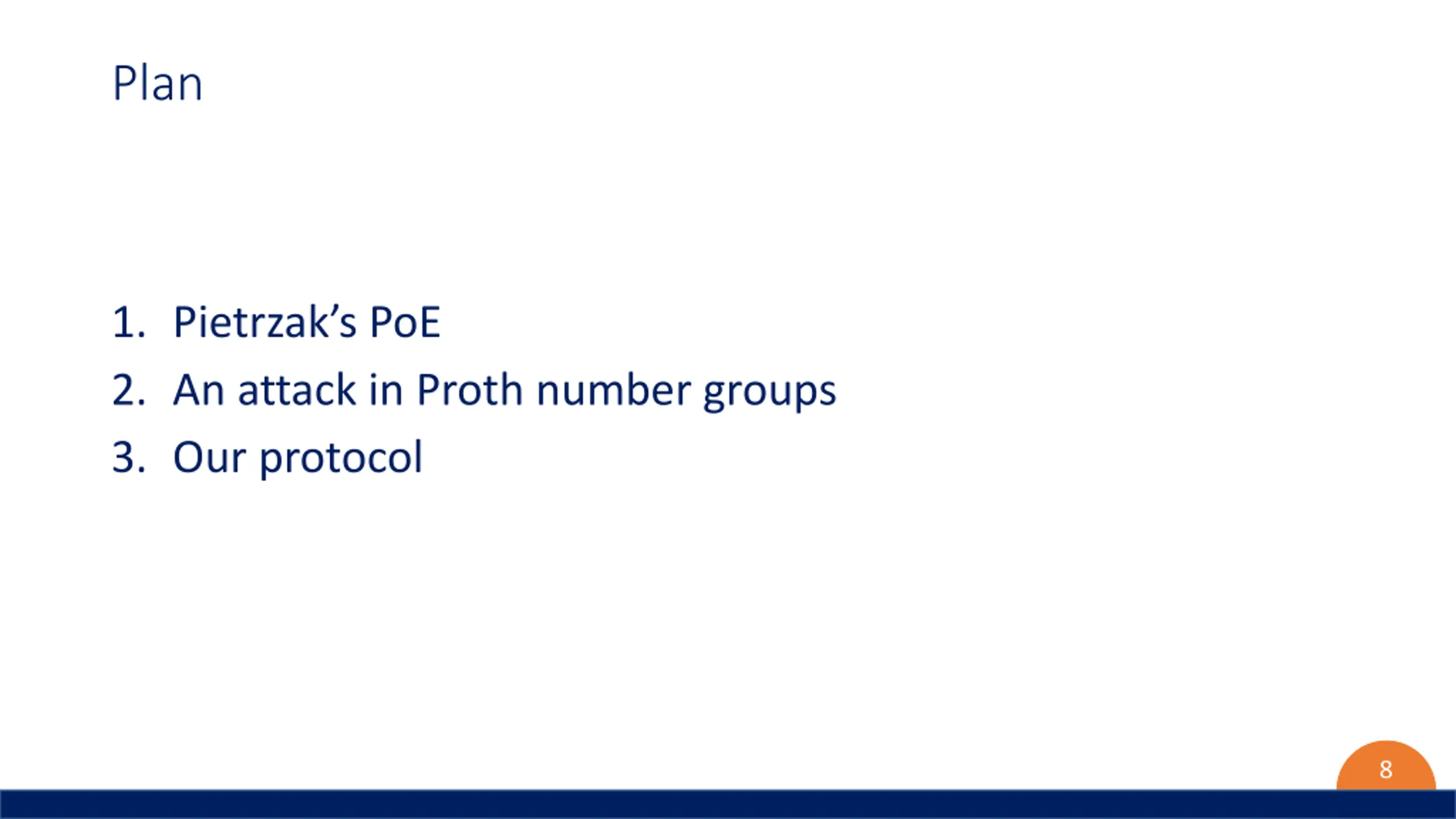 Plan 1. Pietrzak s PoE 2. An attack in Proth number groups 3. Our protocol 8