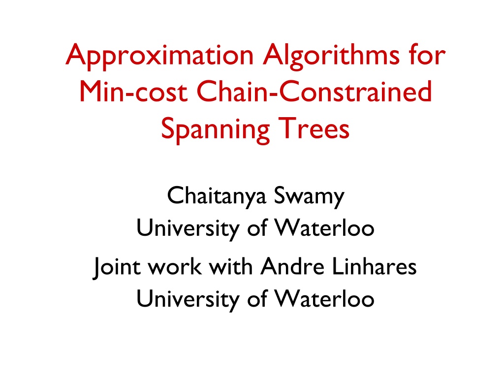Approximation Algorithms for Min-cost Chain-Constrained Spanning Trees Chaitanya Swamy University of Waterloo Joint work with Andre Linhares University of Waterloo