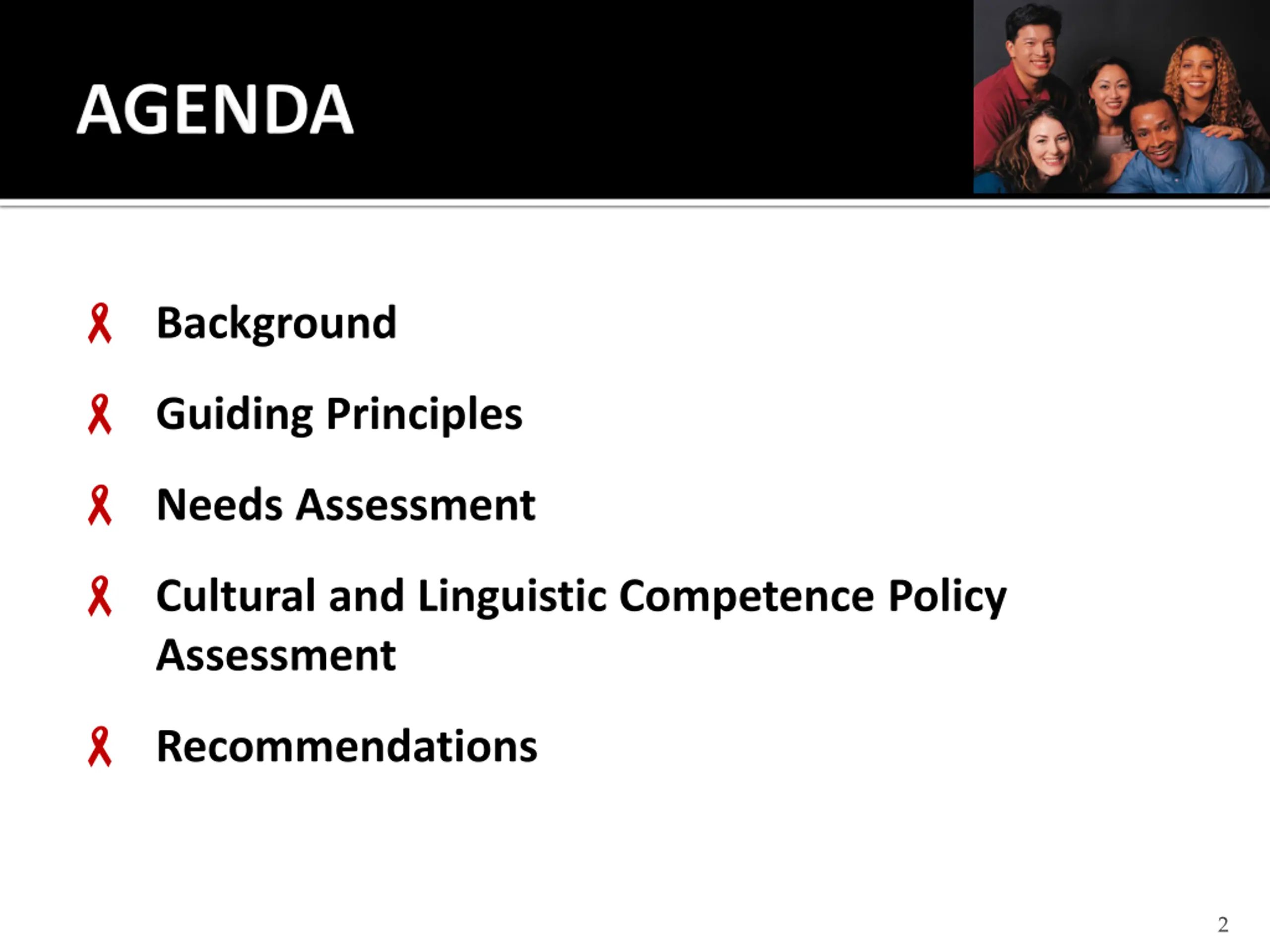 Background Guiding Principles Needs Assessment Cultural and Linguistic Competence Policy Assessment Recommendations 2
