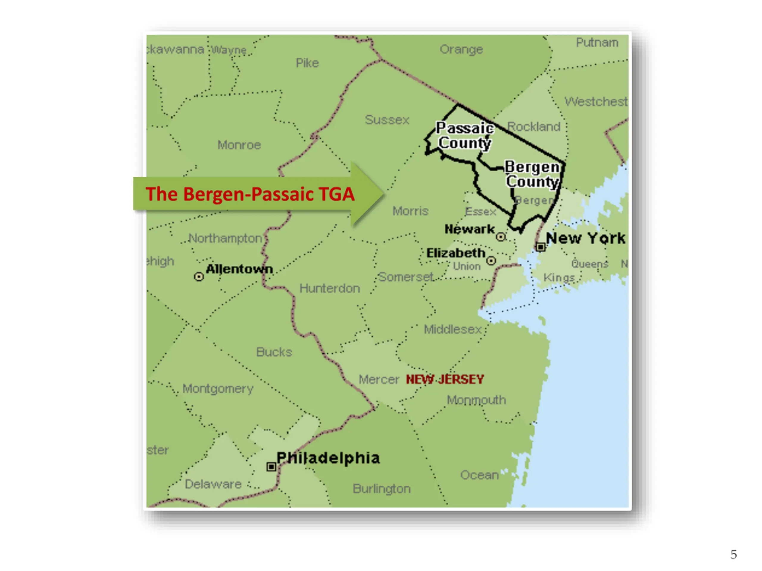 The Bergen-Passaic TGA is a tale of two counties and a city. 4