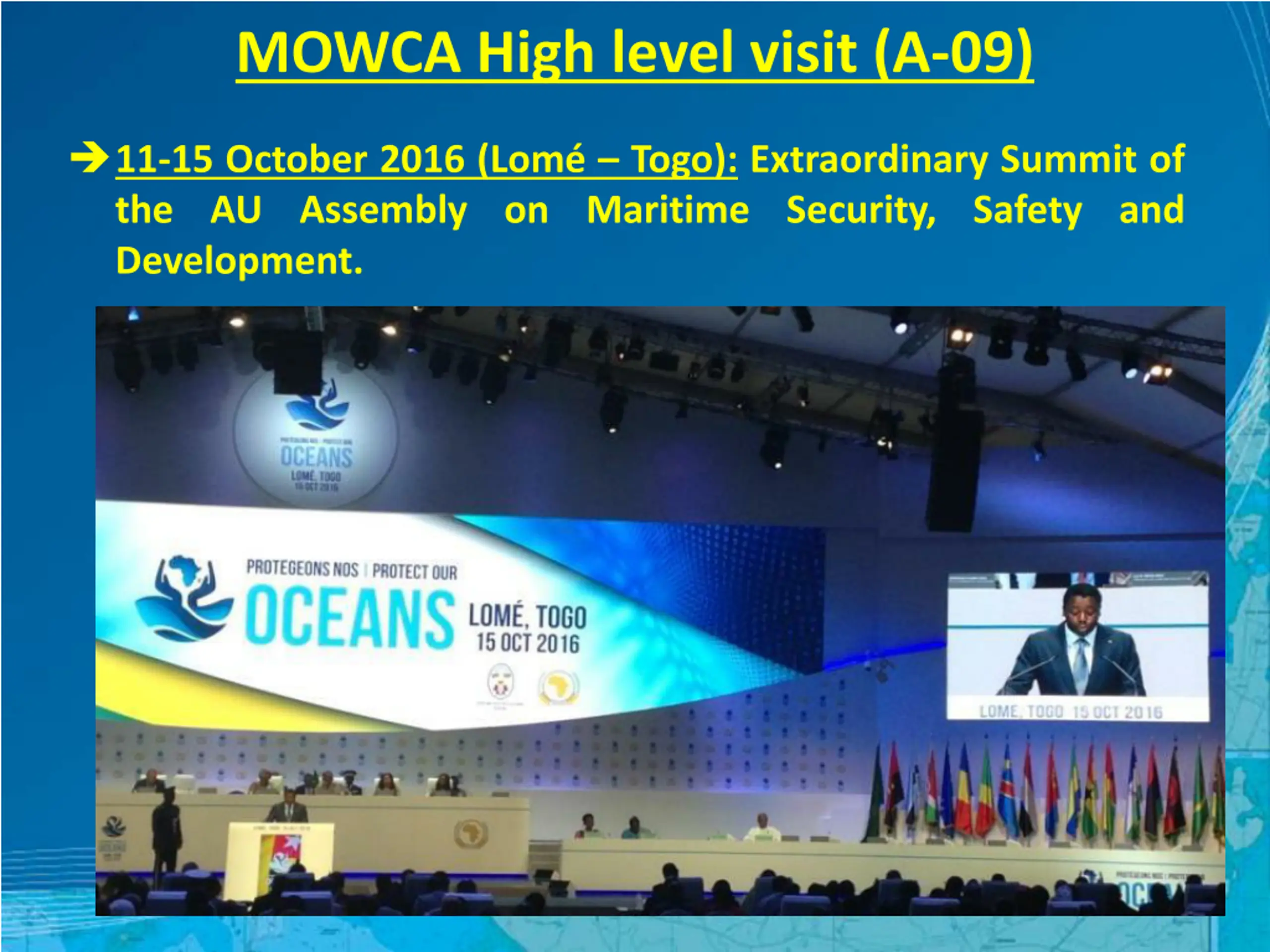 MOWCA High level visit (A-09) 11-15 October 2016 (Lom Togo): Extraordinary Summit of the AU Assembly on Maritime Security, Safety and Development. CBSC15 EAtHC Report Surinam June 2017