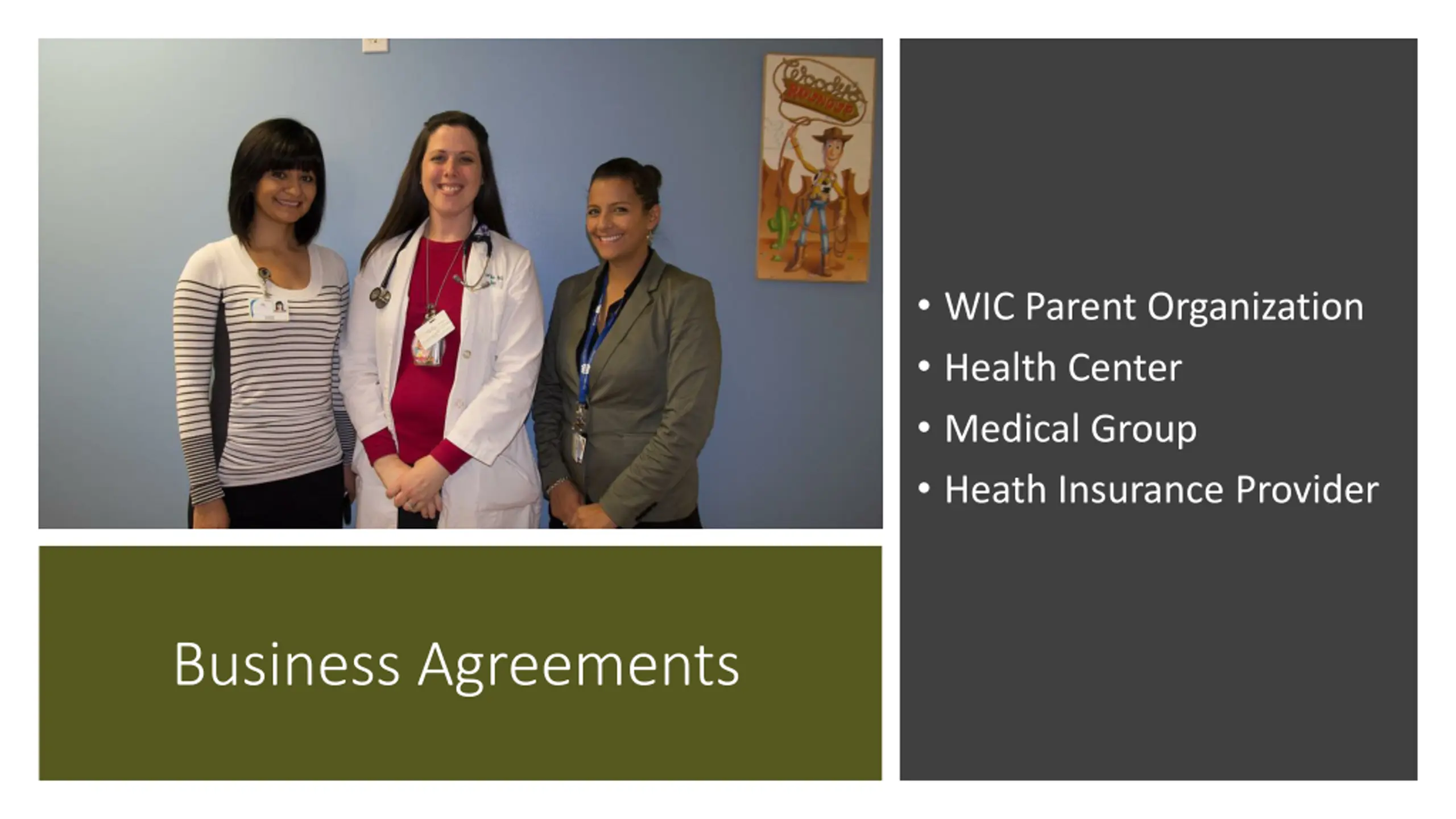 WIC Parent Organization Health Center Medical Group Heath Insurance Provider Business Agreements