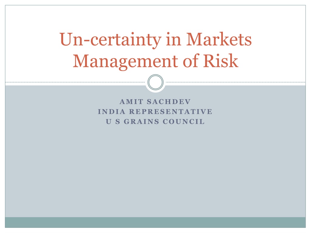 Un-certainty in Markets Management of Risk AMIT SACHDEV INDIA REPRESENTATIVE U S GRAINS COUNCIL