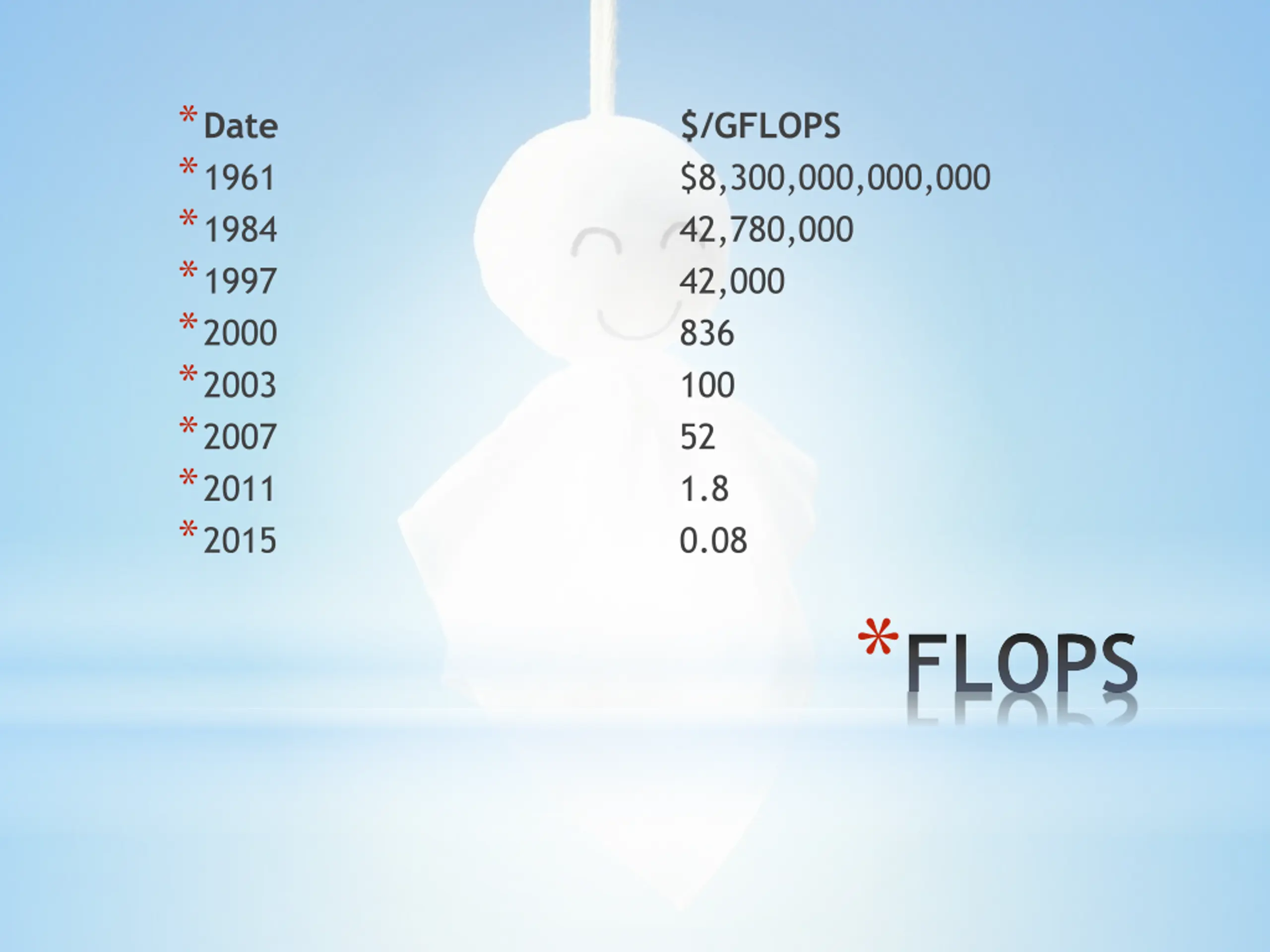 *Date *1961 *1984 *1997 *2000 *2003 *2007 *2011 *2015 $/GFLOPS $8,300,000,000,000 42,780,000 42,000 836 100 52 1.8 0.08 *FLOPS