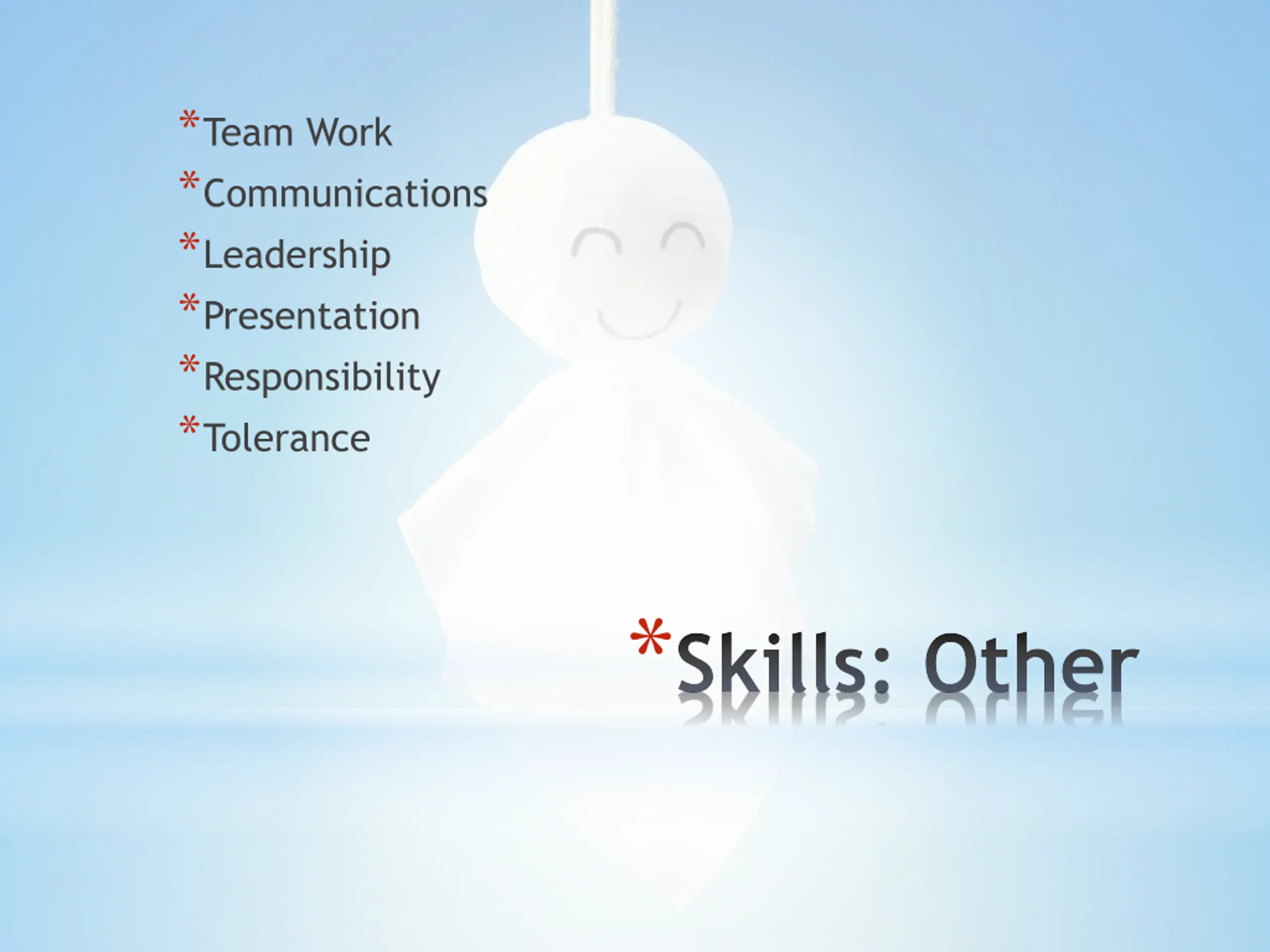 *Team Work *Communications *Leadership *Presentation *Responsibility *Tolerance *Skills: Other