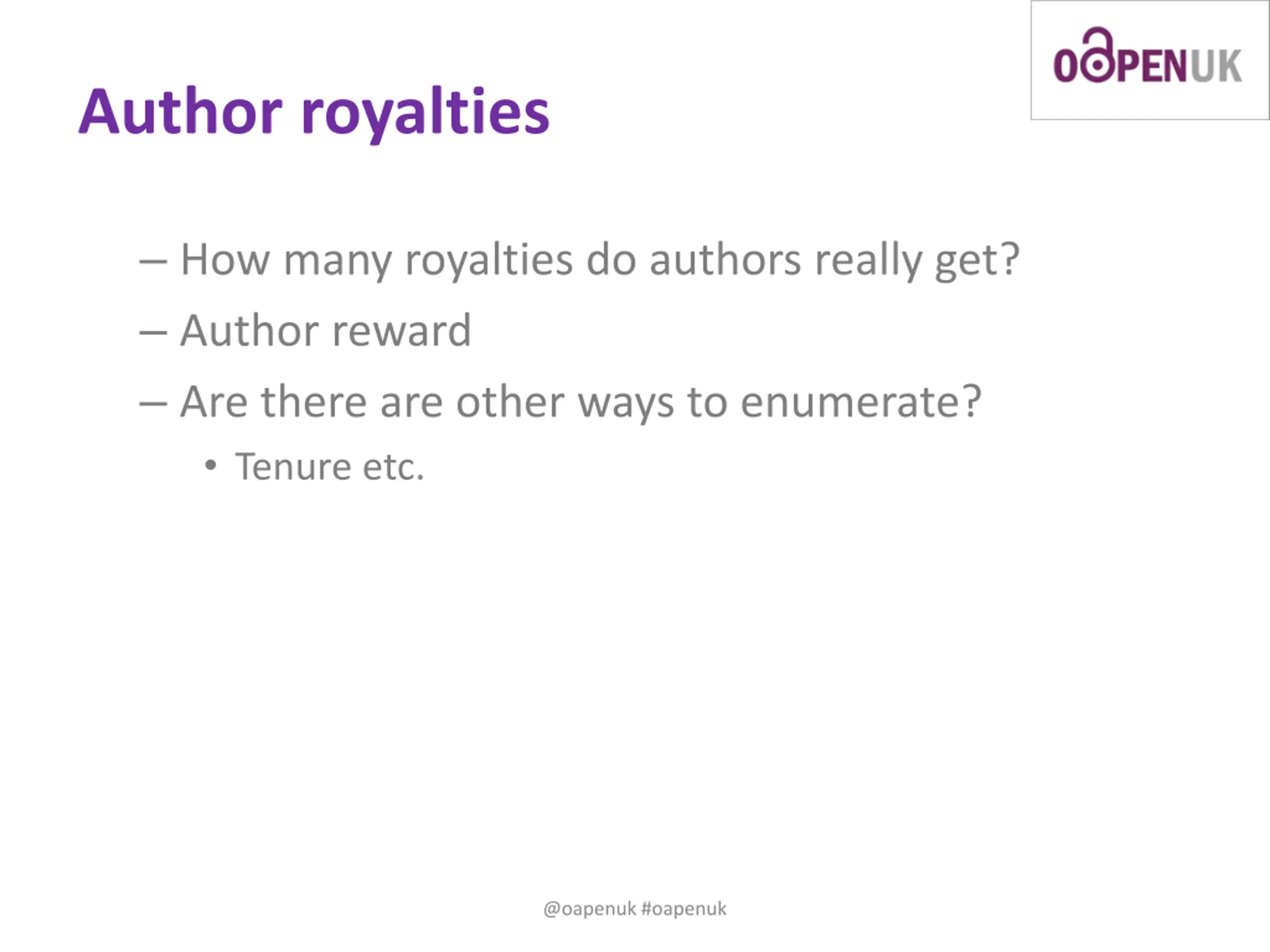 Author royalties How many royalties do authors really get? Author reward Are there are other ways to enumerate? Tenure etc. @oapenuk #oapenuk