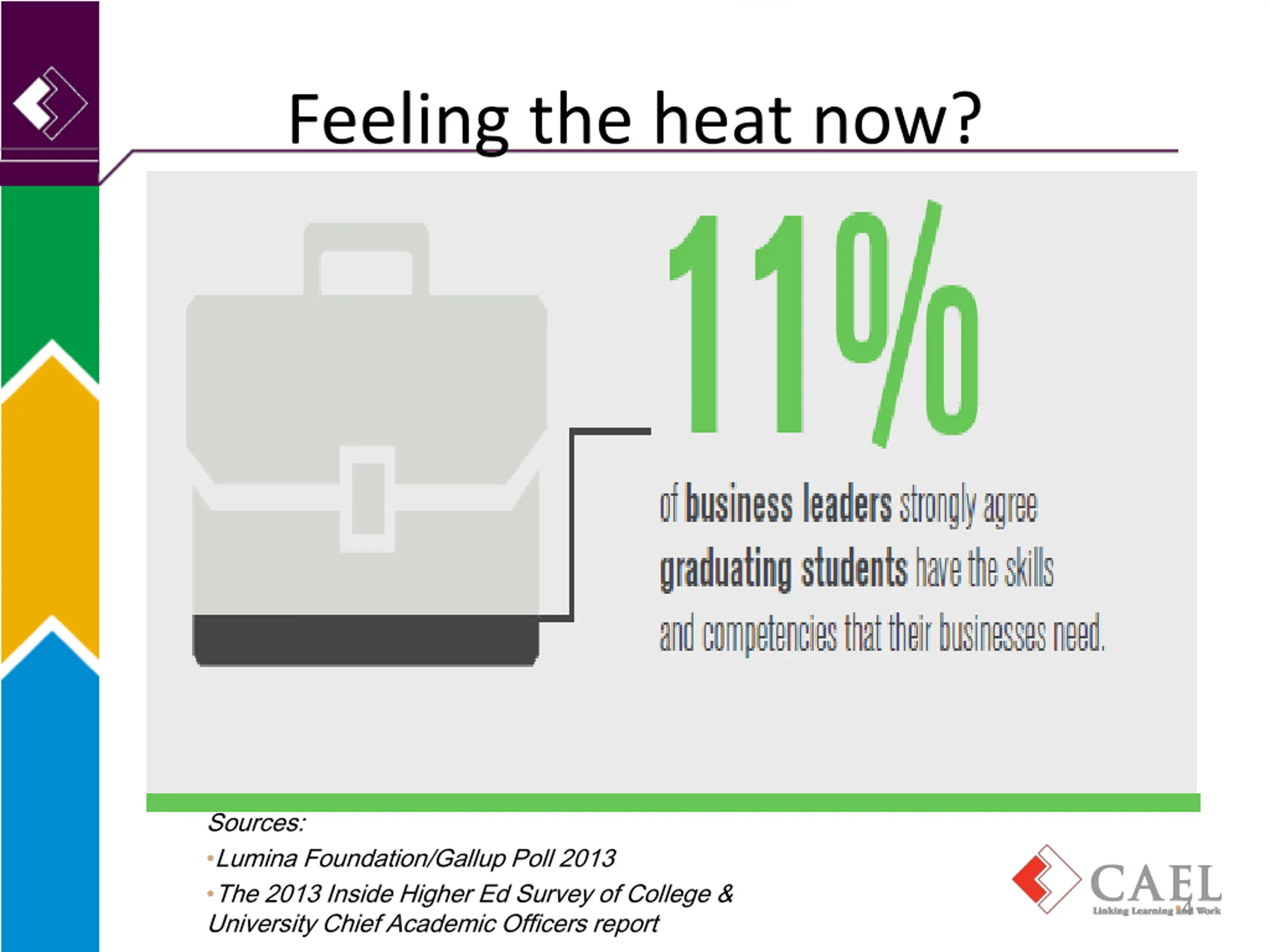 Feeling the heat now? Sources: Lumina Foundation/Gallup Poll 2013 The 2013 Inside Higher Ed Survey of College & University Chief Academic Officers report 4