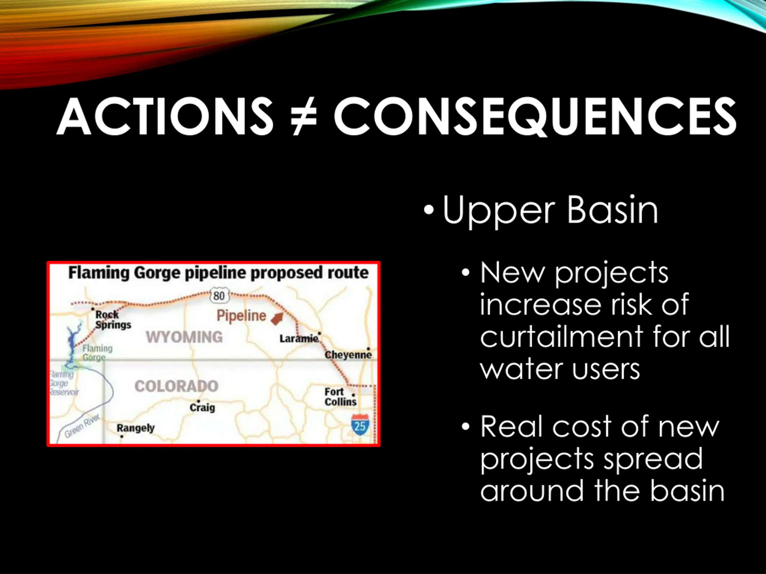 ACTIONS CONSEQUENCES Upper Basin New projects increase risk of curtailment for all water users Real cost of new projects spread around the basin