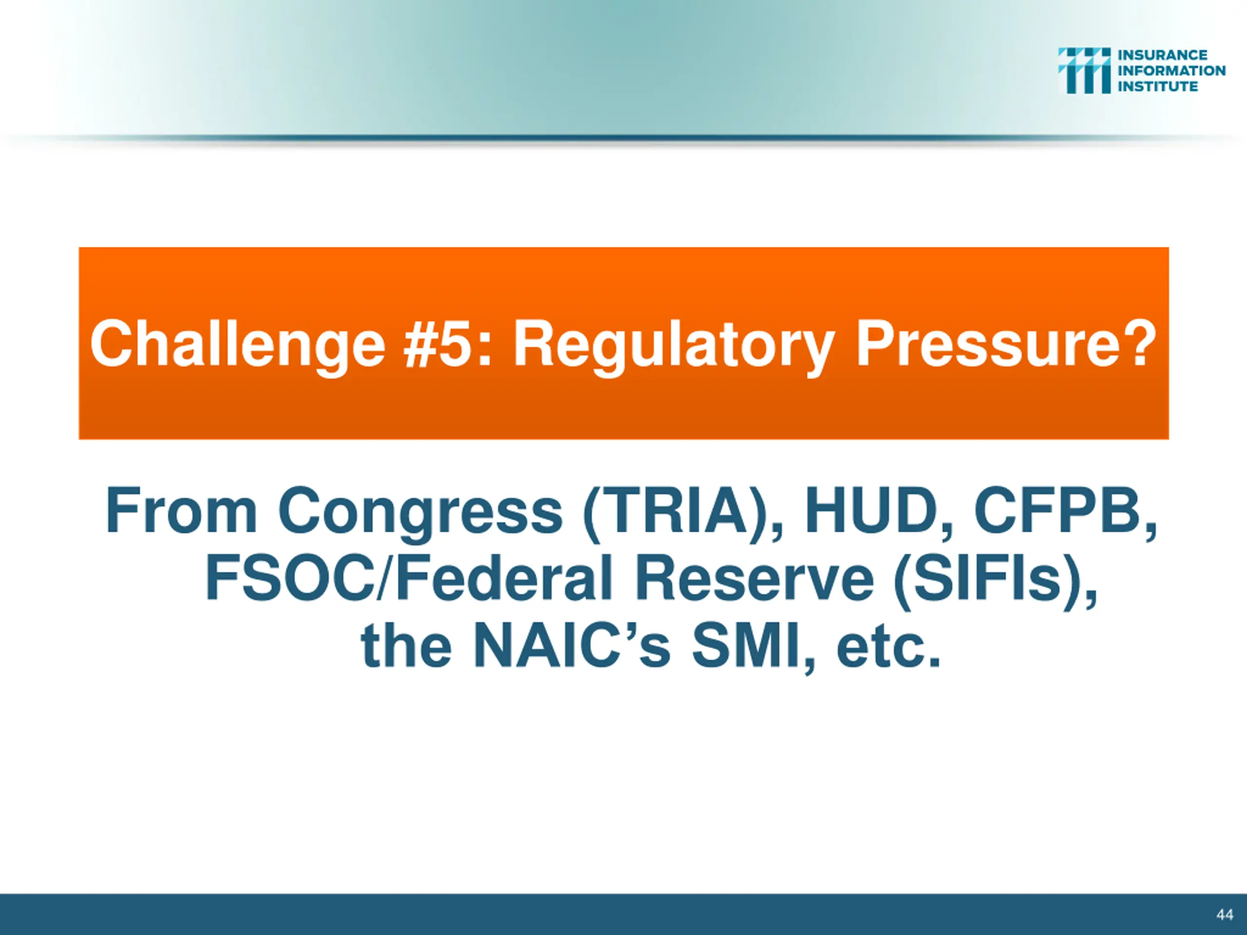Challenge #5: Regulatory Pressure? From Congress (TRIA), HUD, CFPB, FSOC/Federal Reserve (SIFIs), the NAIC s SMI, etc. 44