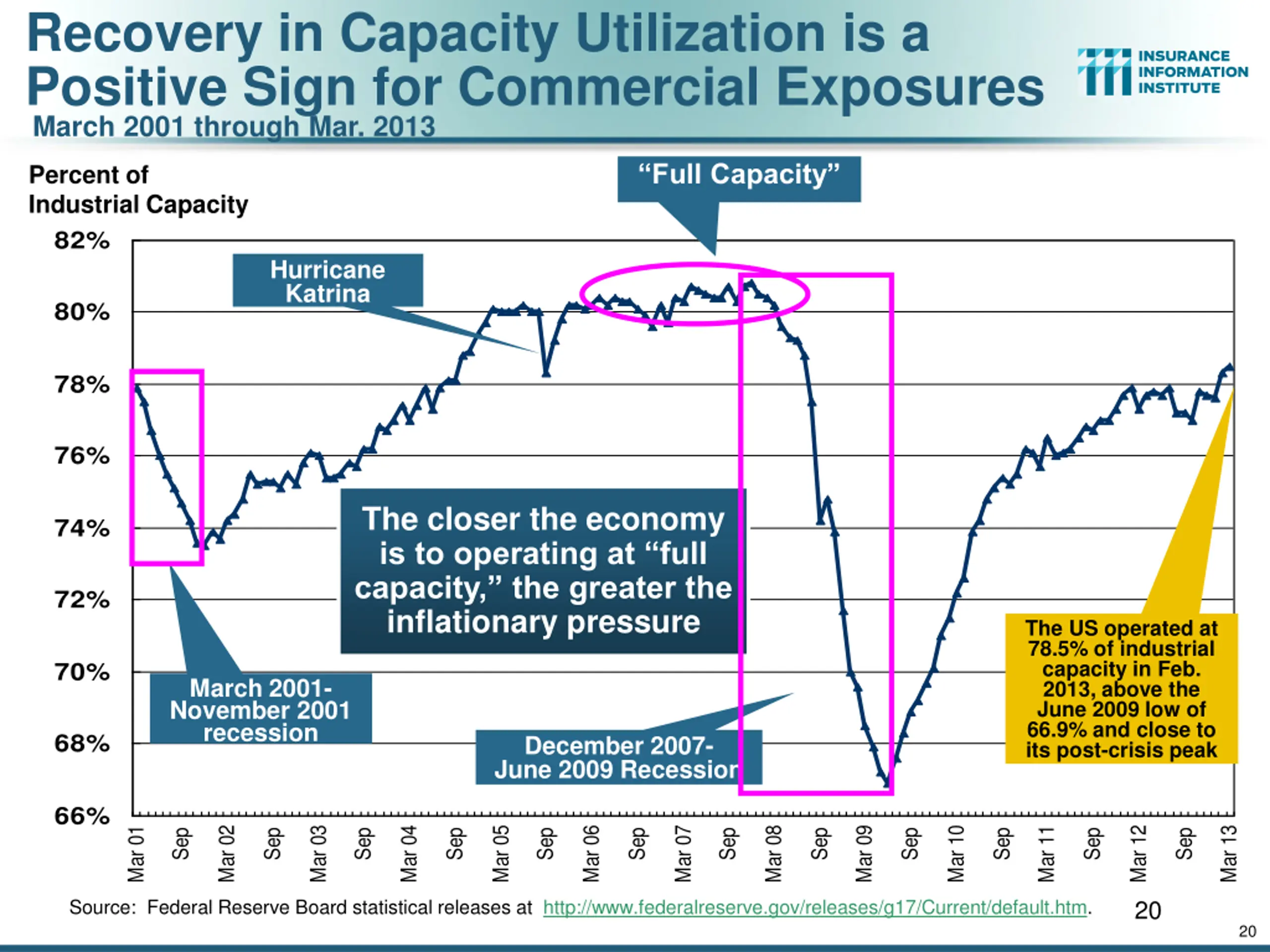 Recovery in Capacity Utilization is a Positive Sign for Commercial Exposures March 2001 through Mar. 2013 Full Capacity Percent of Industrial Capacity 82% Hurricane Katrina 80% 78% 76% The closer the economy is to operating at full capacity, the greater the inflationary pressure 74% 72% The US operated at 78.5% of industrial capacity in Feb. 2013, above the June 2009 low of 66.9% and close to its post-crisis peak 70% March 2001- November 2001 recession 68% December 2007- June 2009 Recession 66% Mar 01 Mar 02 Mar 03 Mar 04 Mar 05 Mar 06 Mar 07 Mar 08 Mar 09 Mar 10 Mar 11 Mar 12 Mar 13 Sep Sep Sep Sep Sep Sep Sep Sep Sep Sep Sep Sep Source: Federal Reserve Board statistical releases at http://www.federalreserve.gov/releases/g17/Current/default.htm. 20 20