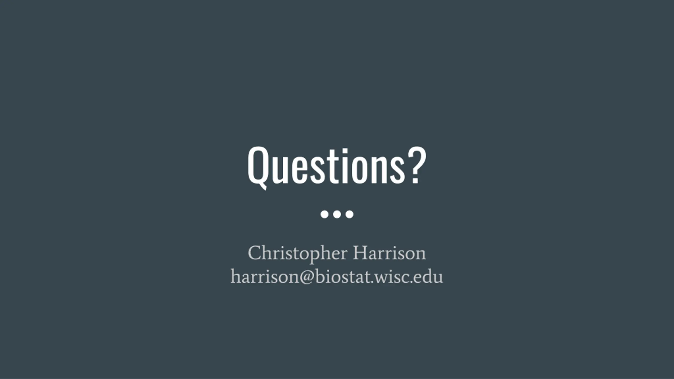 Questions? Christopher Harrison harrison@biostat.wisc.edu