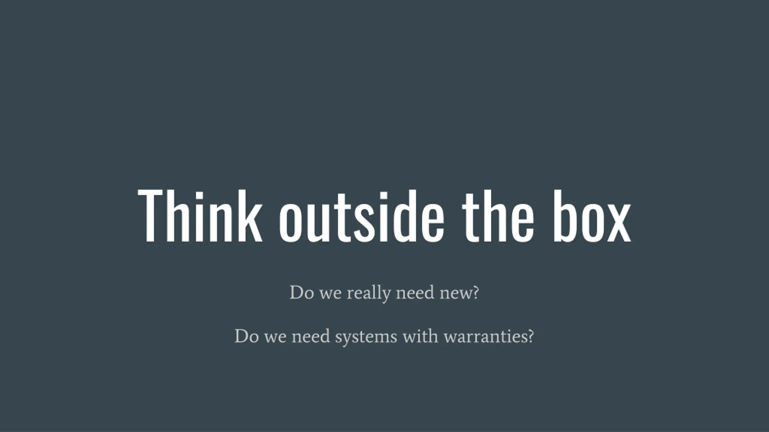 Think outside the box Do we really need new? Do we need systems with warranties?