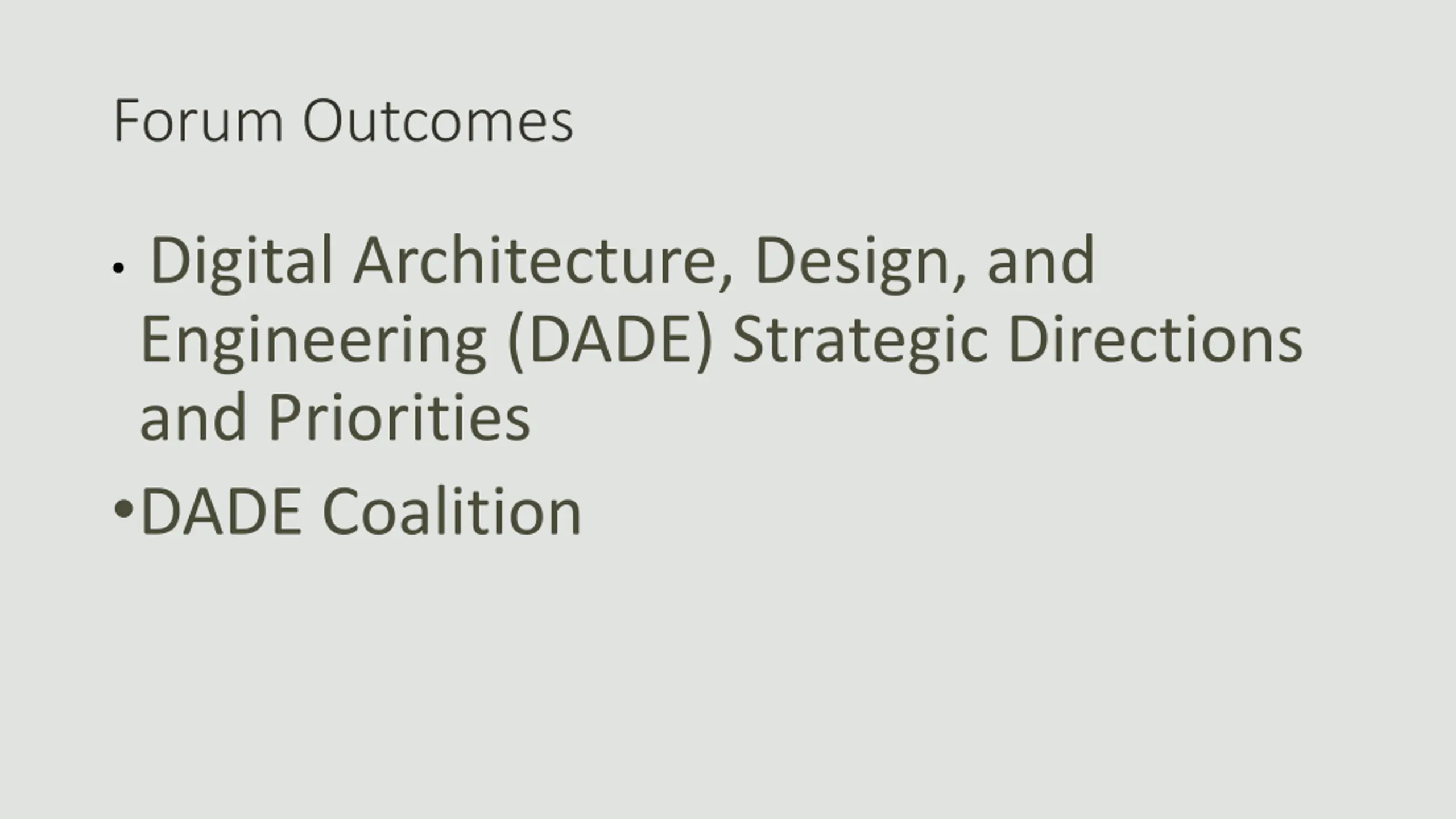 Forum Outcomes Digital Architecture, Design, and Engineering (DADE) Strategic Directions and Priorities DADE Coalition