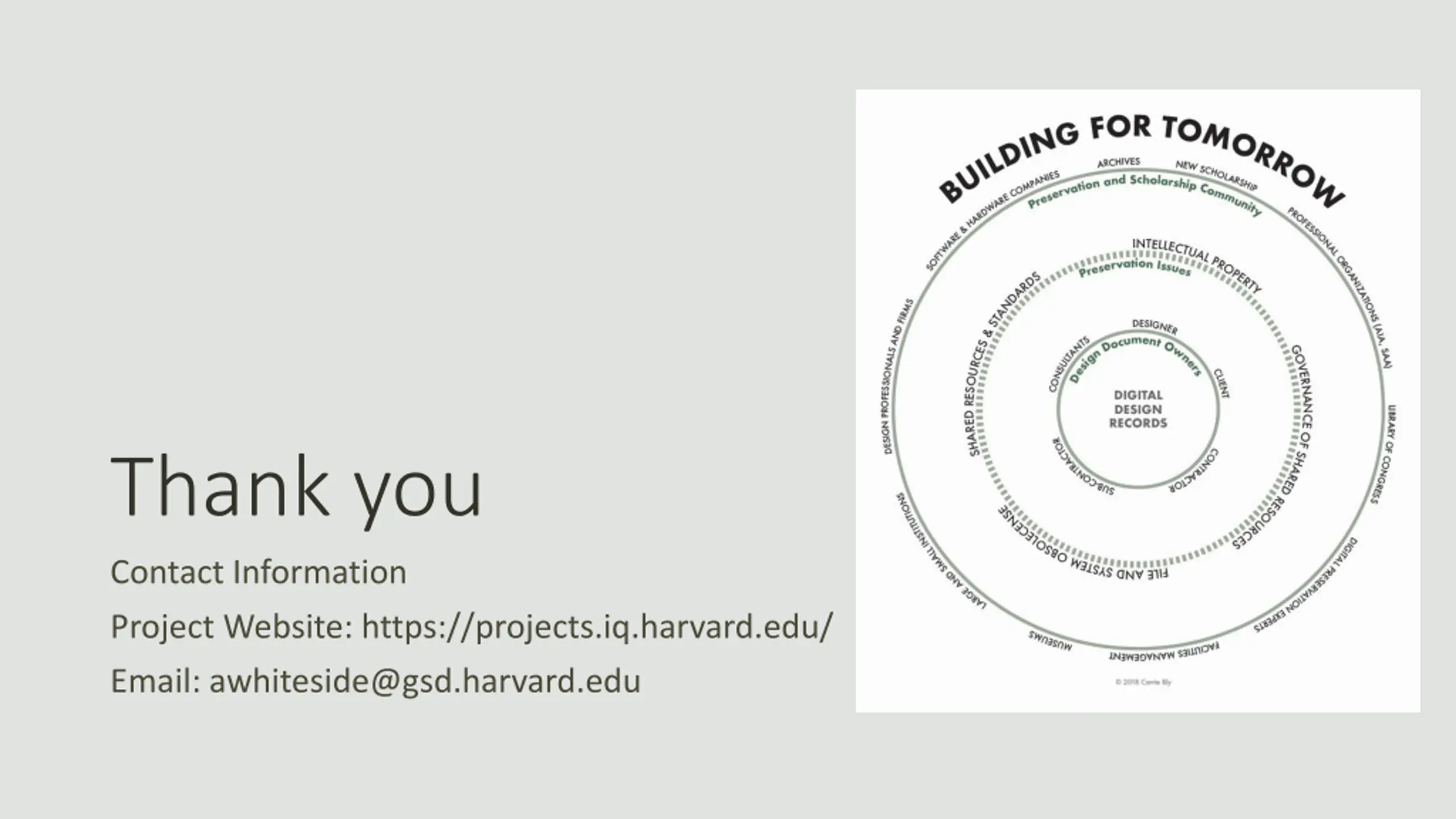 Thank you Contact Information Project Website: https://projects.iq.harvard.edu/ Email: awhiteside@gsd.harvard.edu
