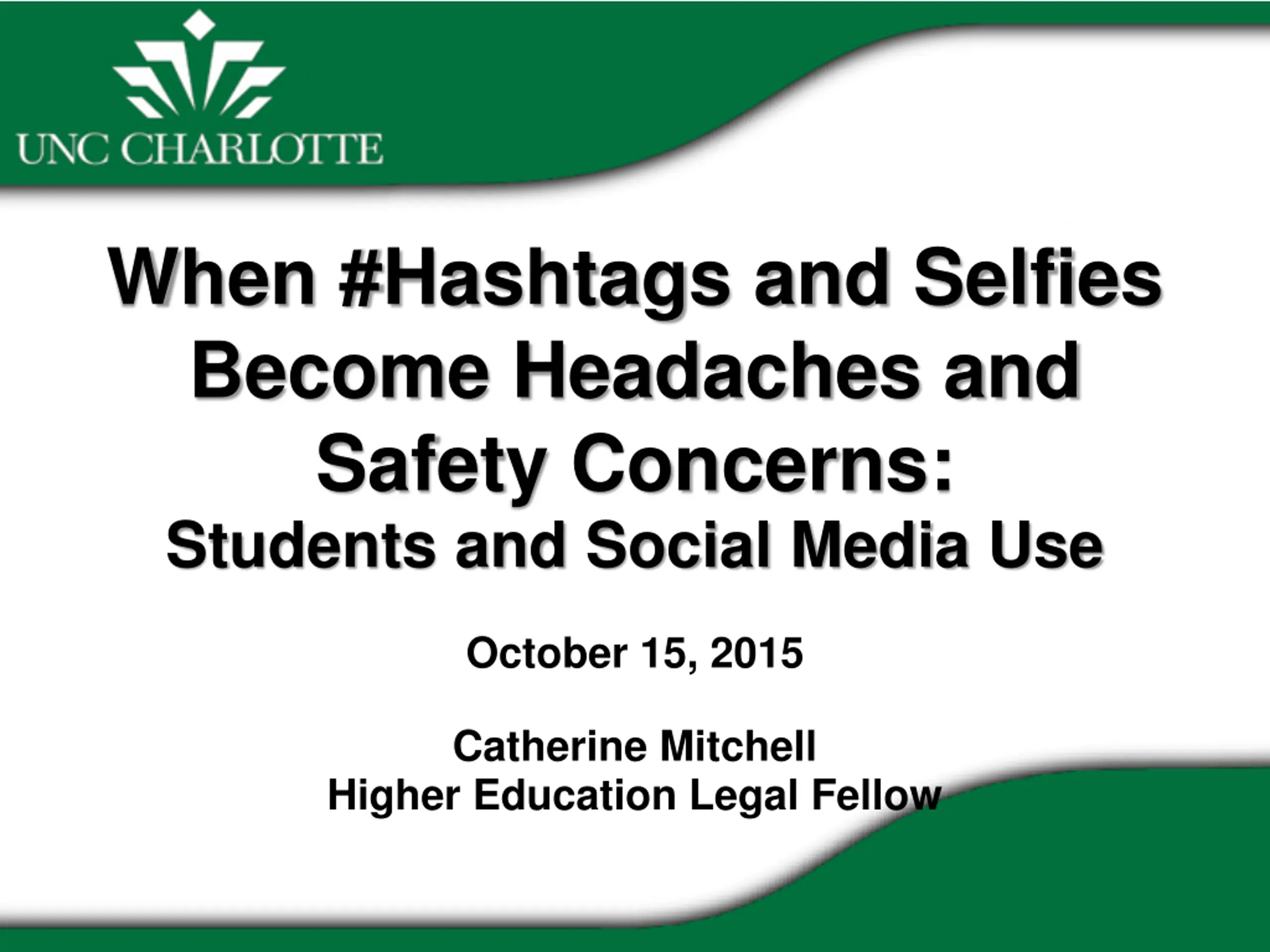 When #Hashtags and Selfies Become Headaches and Safety Concerns: Students and Social Media Use October 15, 2015 Catherine Mitchell Higher Education Legal Fellow
