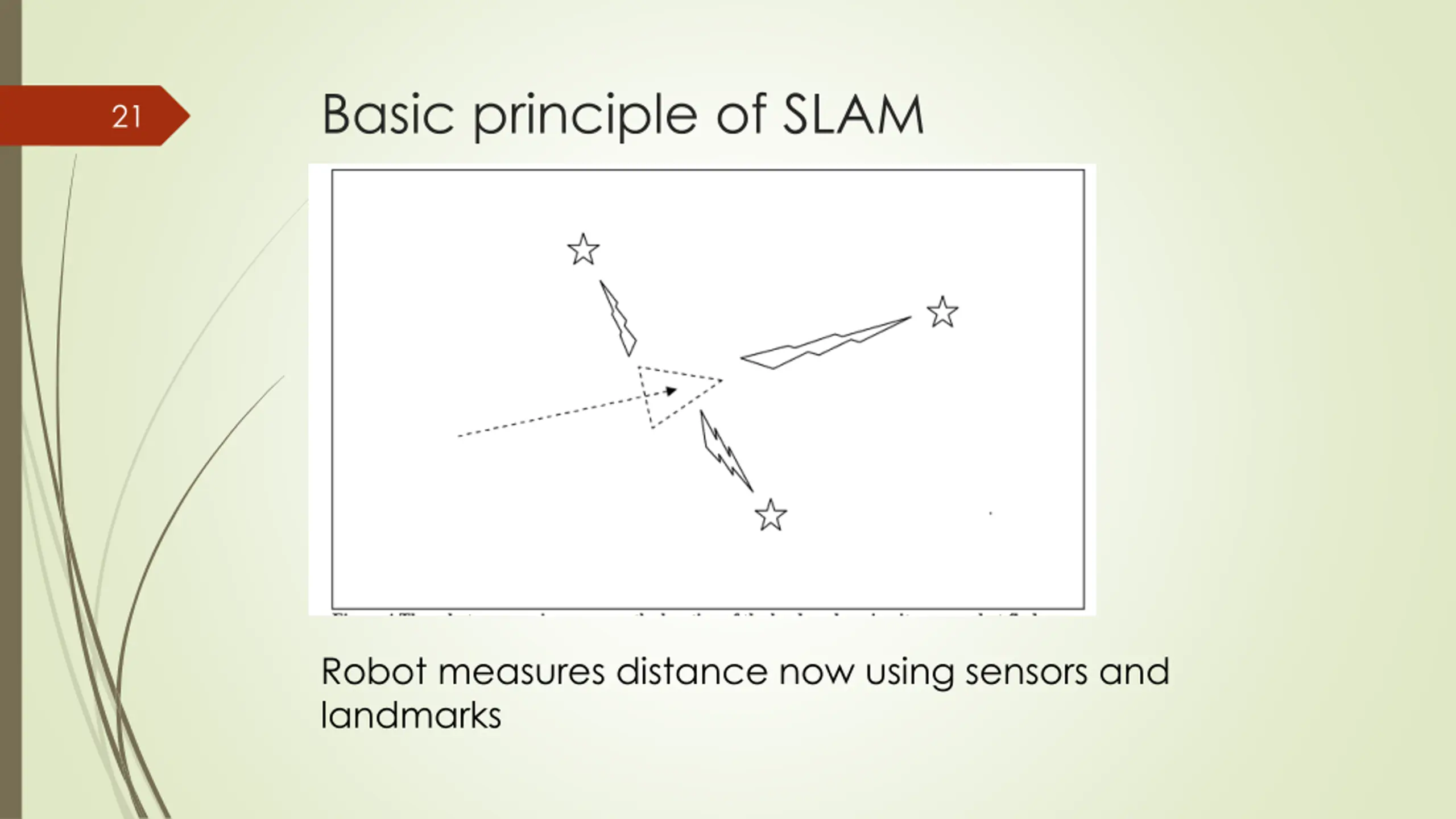 Basic principle of SLAM 21 Robot measures distance now using sensors and landmarks