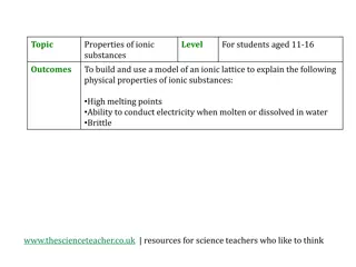 PROPERTIESOF IONIC COMPOUNDS Ionic compounds tend to have high melting points (above 300oC). Ionic compounds are poor conductors in the solid state, but they can conduct heat or electricity when they are melted. Ionic compounds are brittle, so they shatter when struck by a hammer. The properties of ionic compounds can be explained by the strong attractions among ions within a crystal lattice.