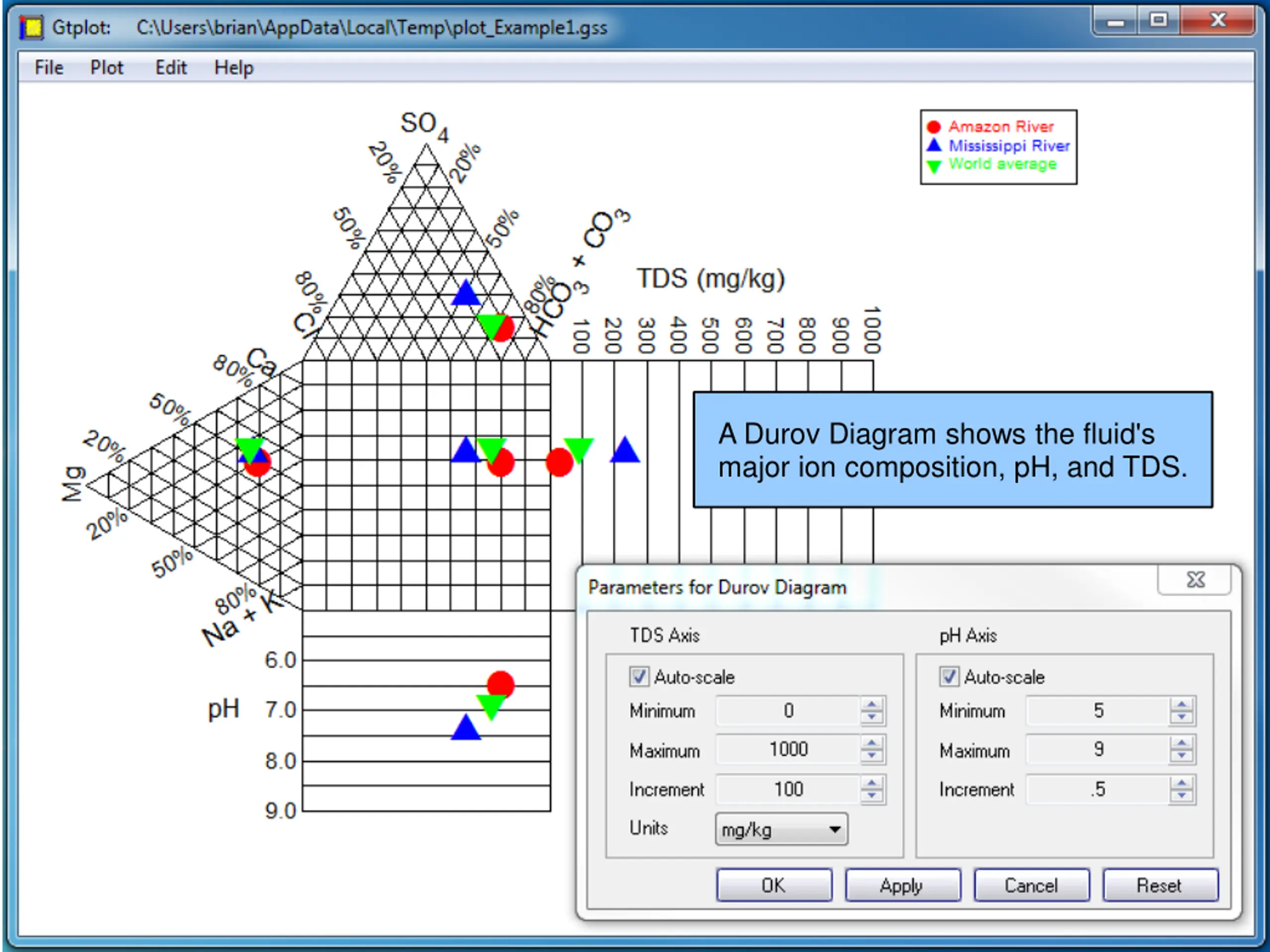 Enter chemical data for one or more samples, then click on Graphs and choose from a number of diagrams. Graphs Piper Diagram