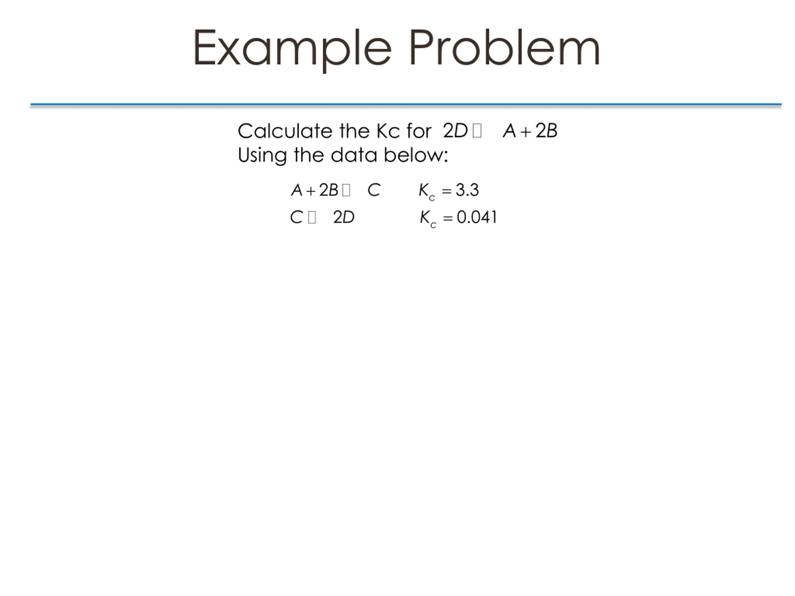Example Problem 2 D A + 2 B Calculate the Kc for Using the data below: A C 2 B C K K 3.3 0.041 + = = c 2 D c