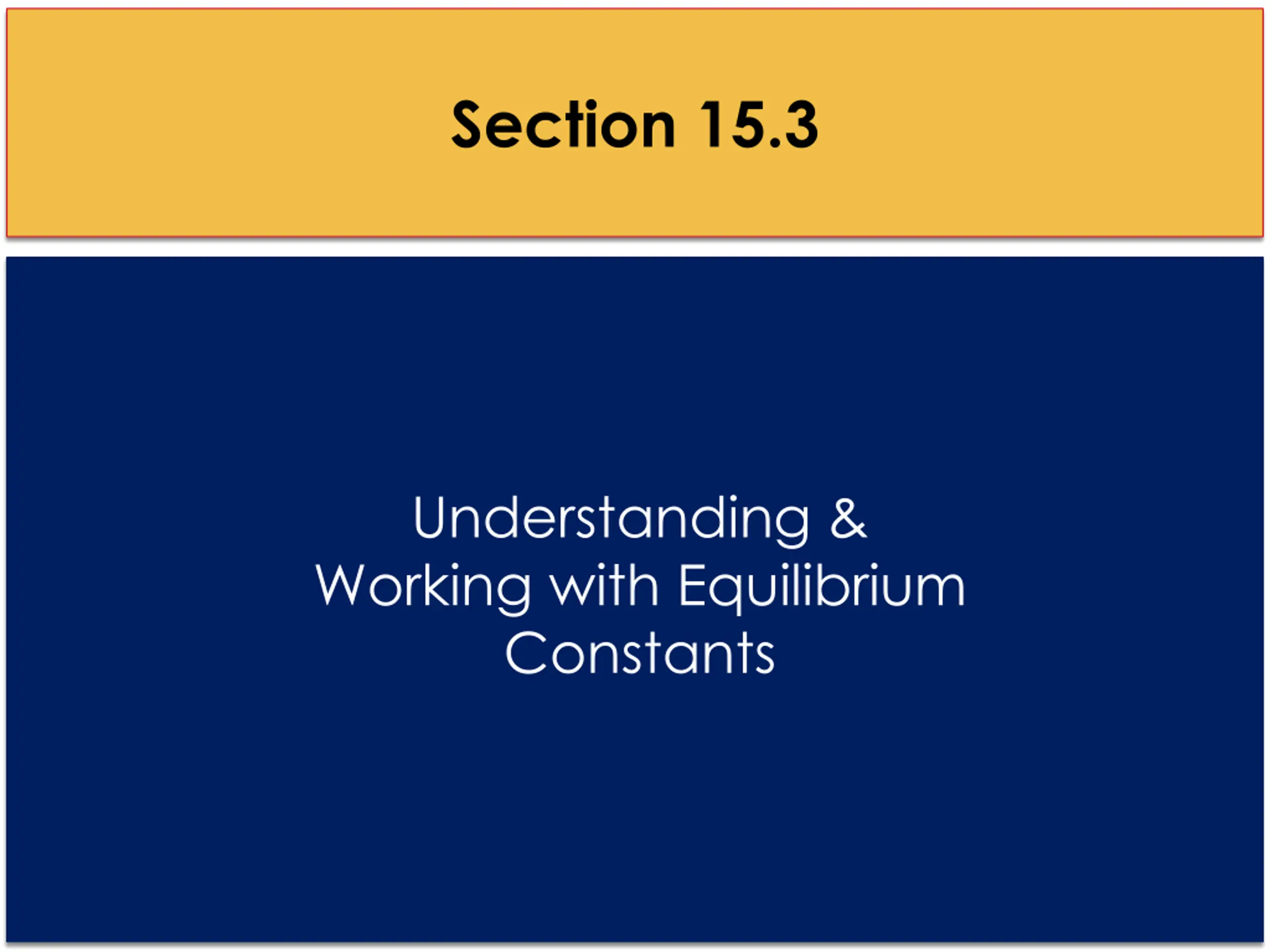 Section 15.3 Understanding & Working with Equilibrium Constants