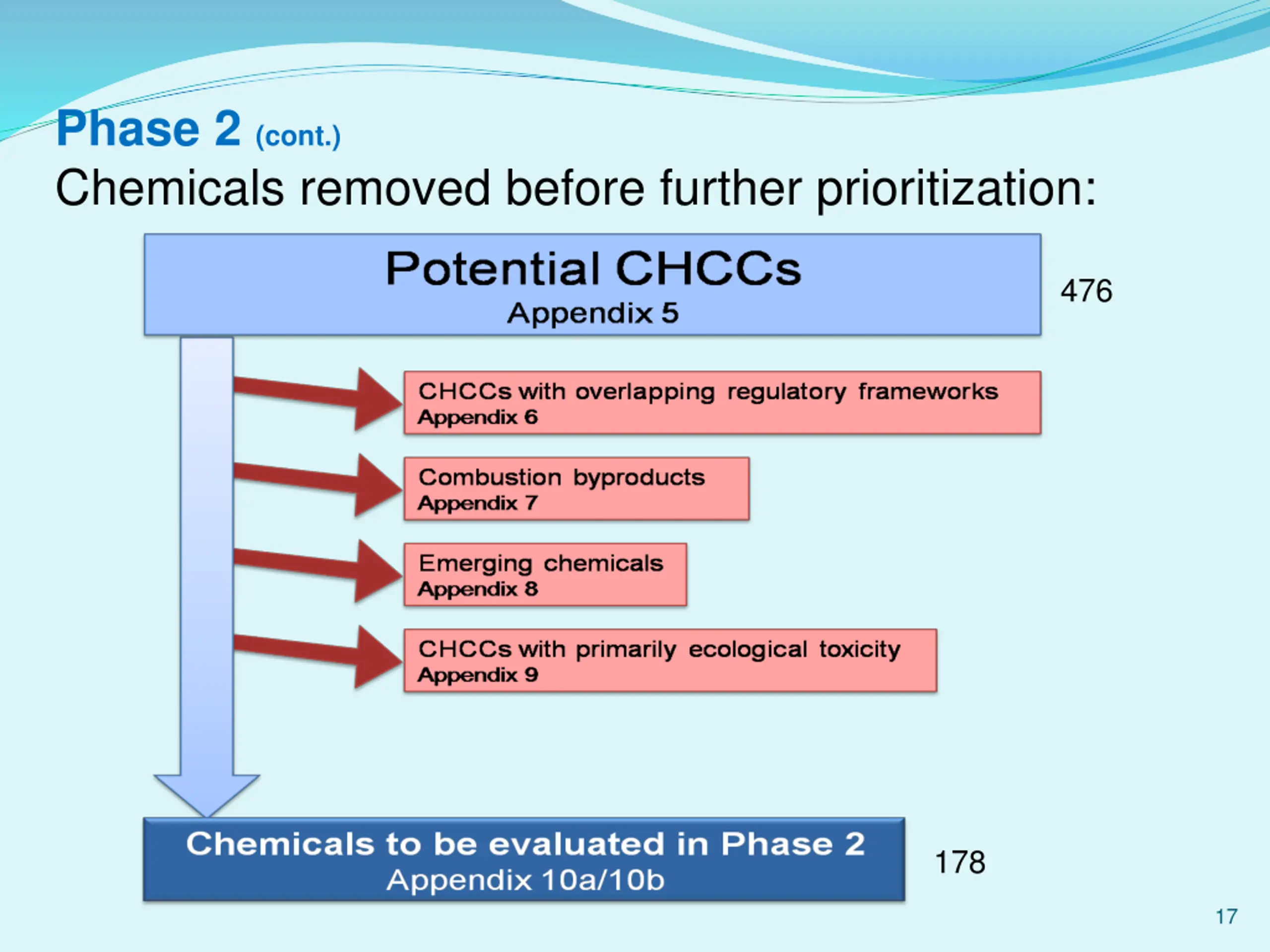 Phase 2 (cont.) Chemicals removed before further prioritization: 476 178 17