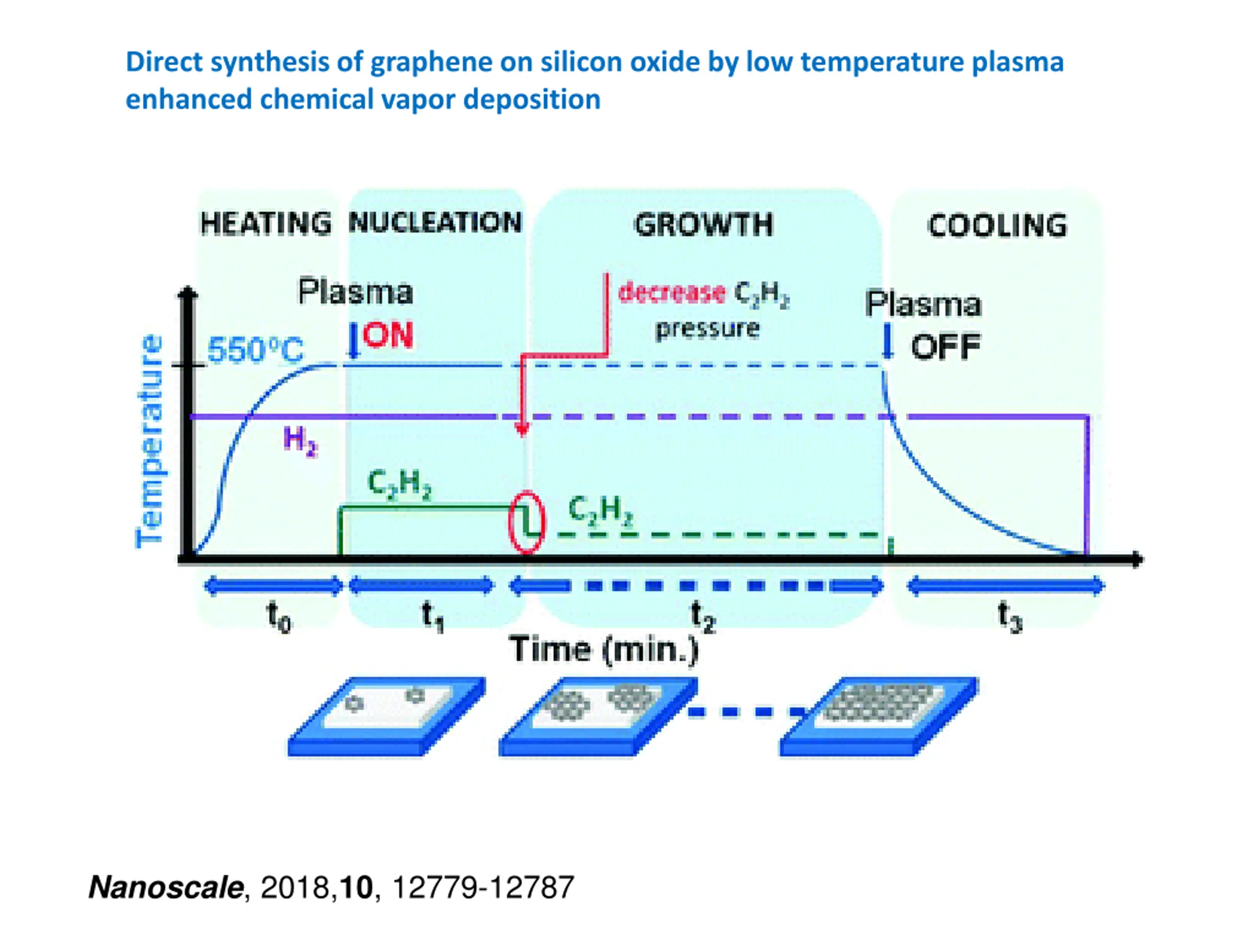 Direct synthesis of graphene on silicon oxide by low temperature plasma enhanced chemical vapor deposition Nanoscale, 2018,10, 12779-12787