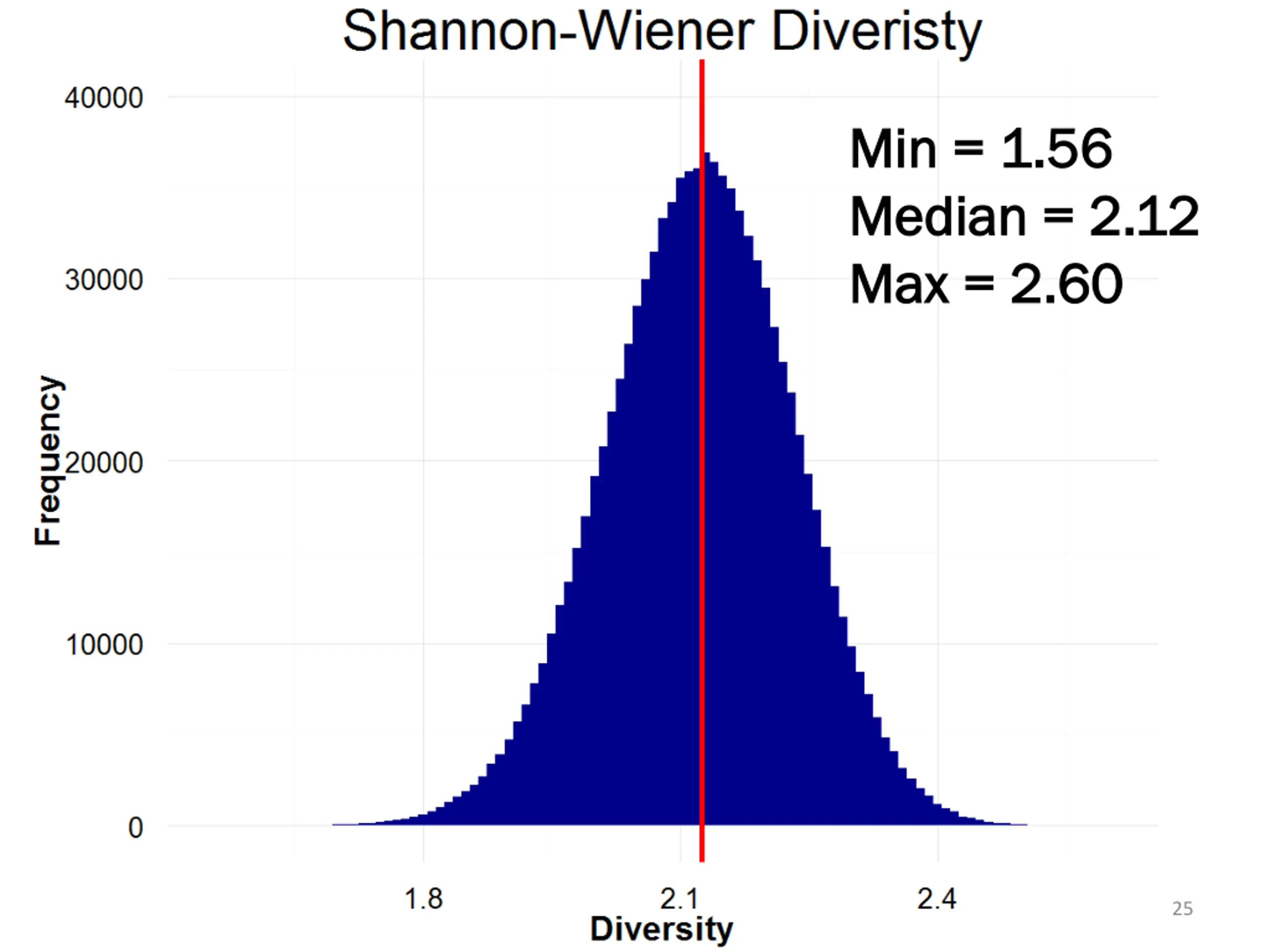 Min = 8 taxa Min = 8 taxa Median = 15 taxa Median = 15 taxa Max = 23 taxa Max = 23 taxa 24