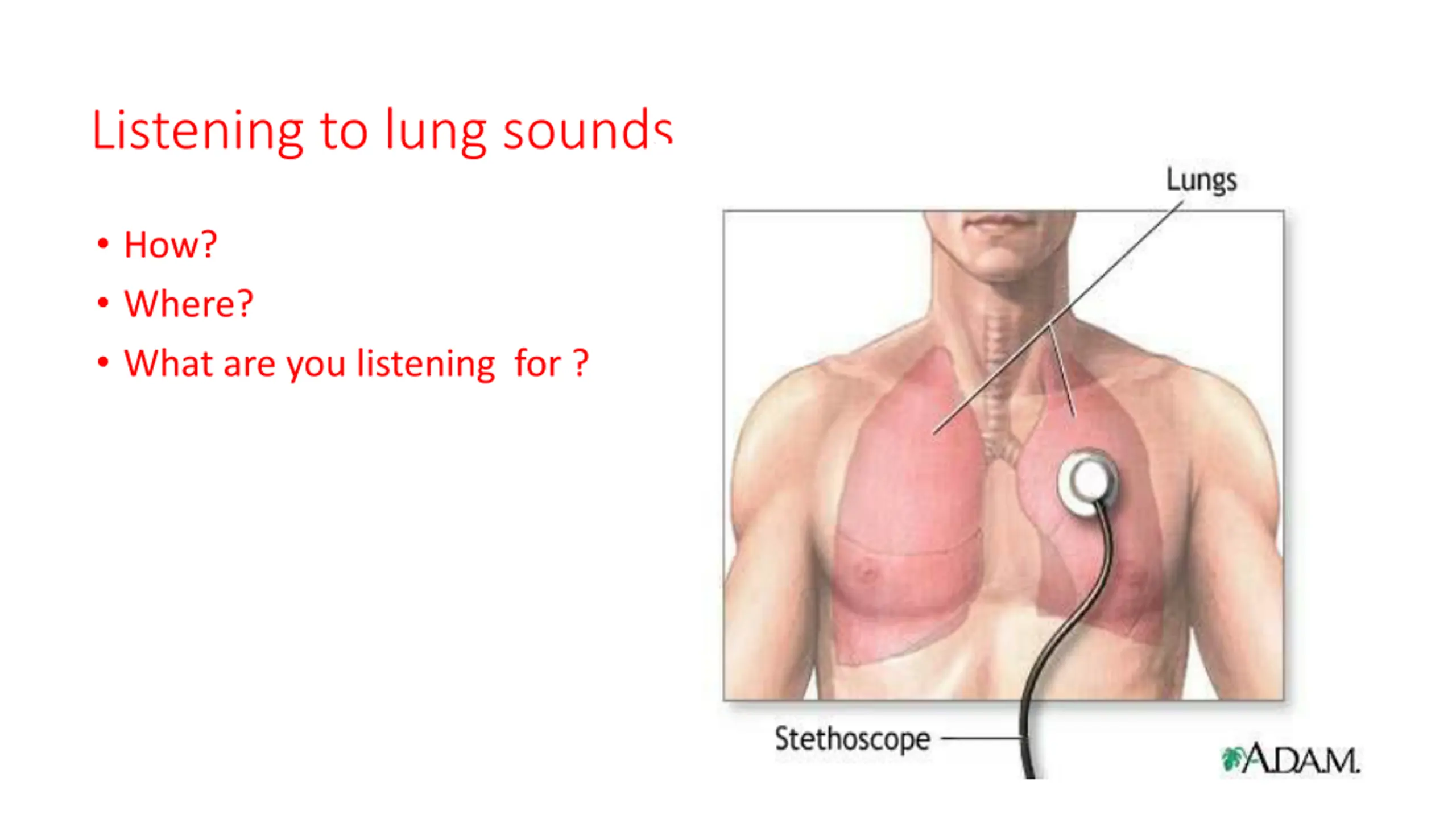 Listening to lung sounds How? Where? What are you listening for ?