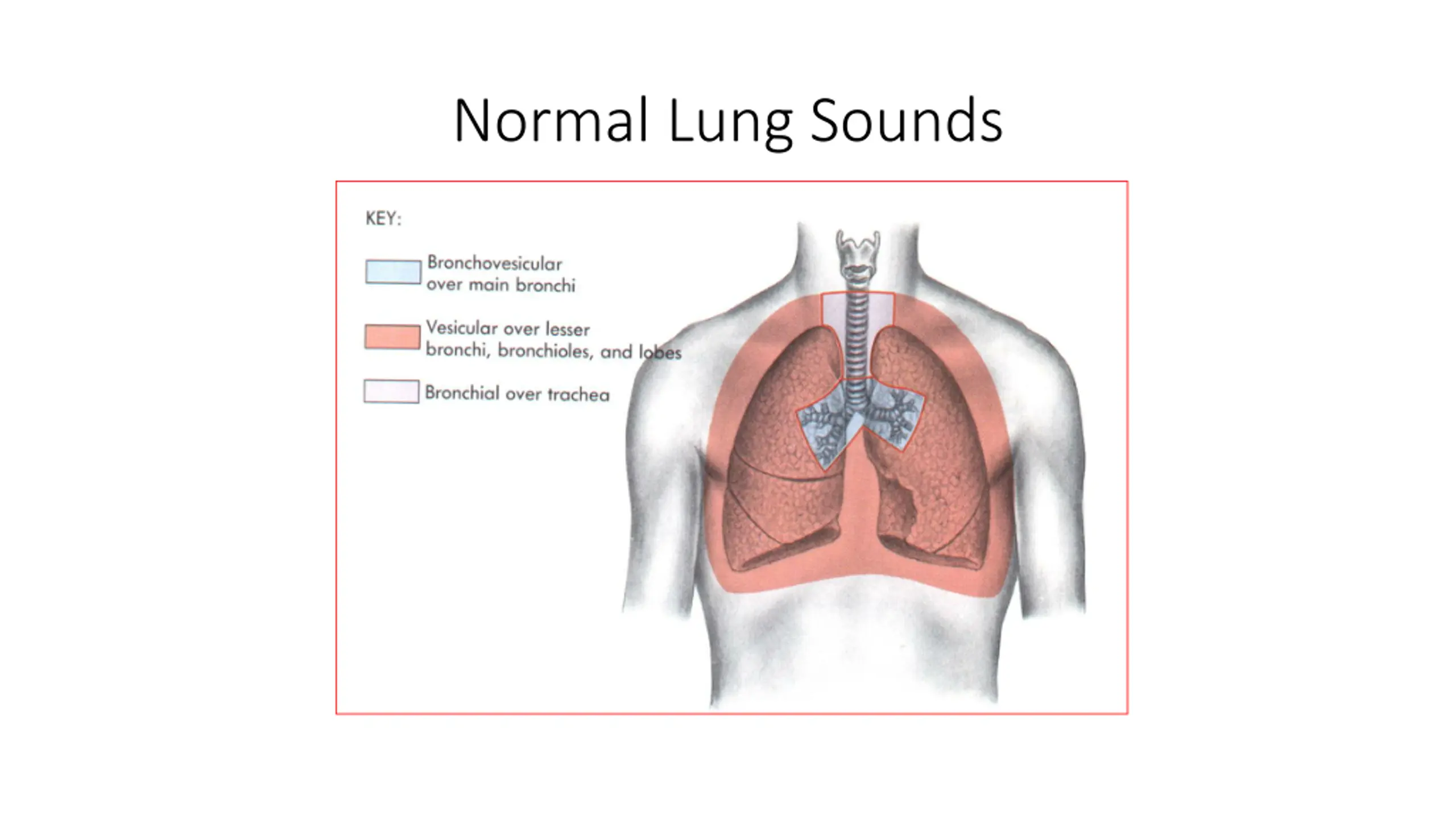 Learn how to perform chest auscultation, where to listen for lung sounds, what to listen for, and the use of a stethoscope to differentiate between high-pitched and low-pitched sounds. Explore the mechanics of sound production in the respiratory system and understand the characteristics of breath sounds. Improve your skills in differentiating between normal and abnormal lung sounds through detailed illustrations and explanations.