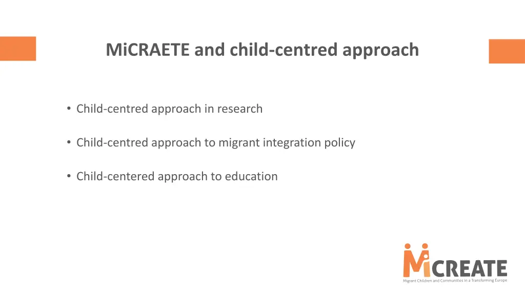 MiCRAETE and child-centred approach Child-centred approach in research Child-centred approach to migrant integration policy Child-centered approach to education