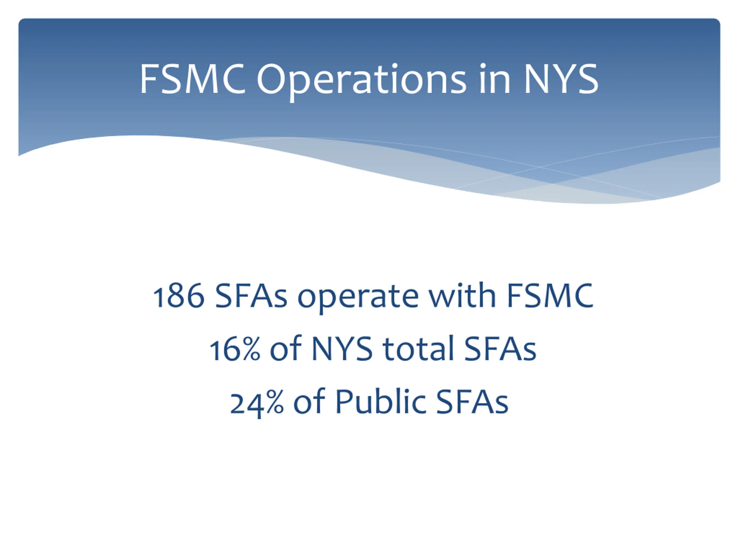 FSMC Operations in NYS 186 SFAs operate with FSMC 16% of NYS total SFAs 24% of Public SFAs