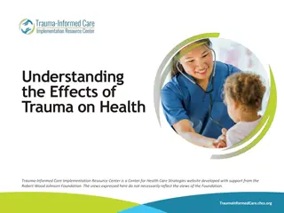WHAT ARE SOME EXAMPLES OF POSSIBLE CHILDHOOD TRAUMA Divorce Bulling Abuse (sexual, physical, emotional, verbal) Parental/Caregiver MH/SA Parental/Caregiver incarceration Neglect Multiple foster homes Poverty Exposure to violence Exposure to sexual experiences `