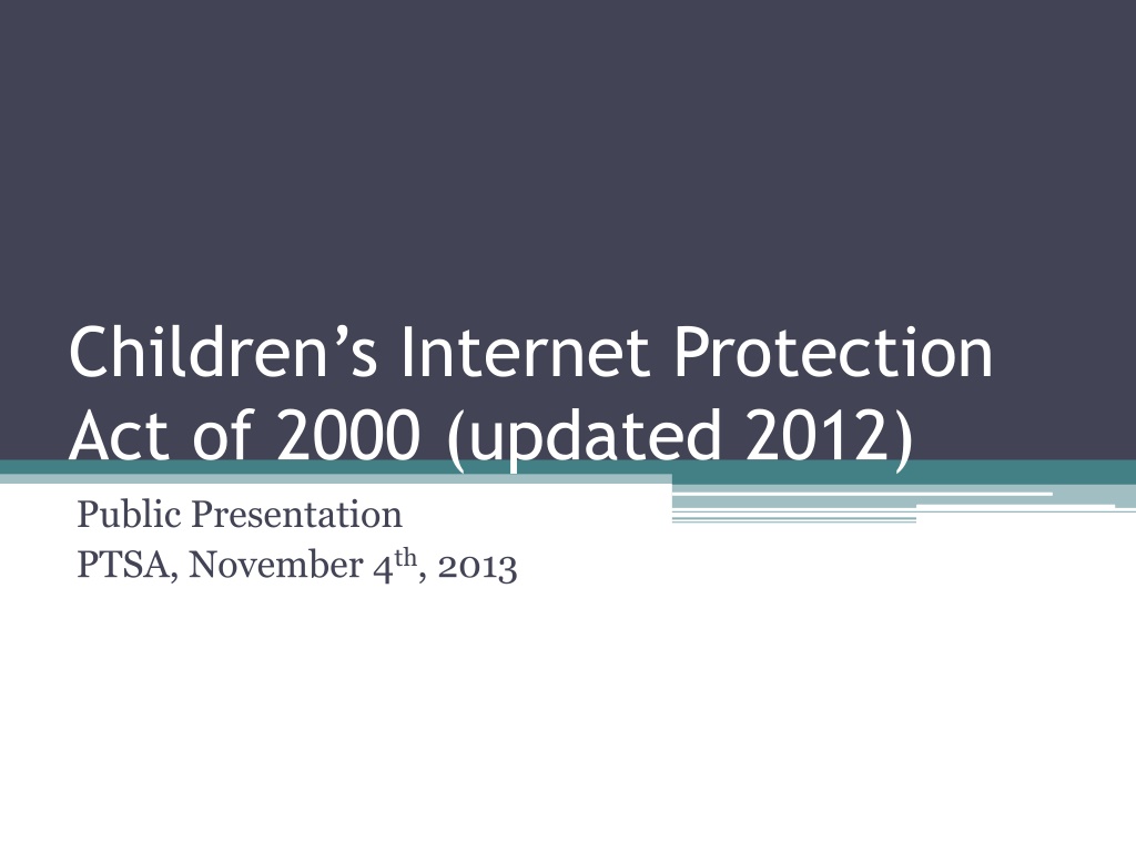 Childrens Internet Protection Act of 2000 (updated 2012) Public Presentation PTSA, November 4th, 2013