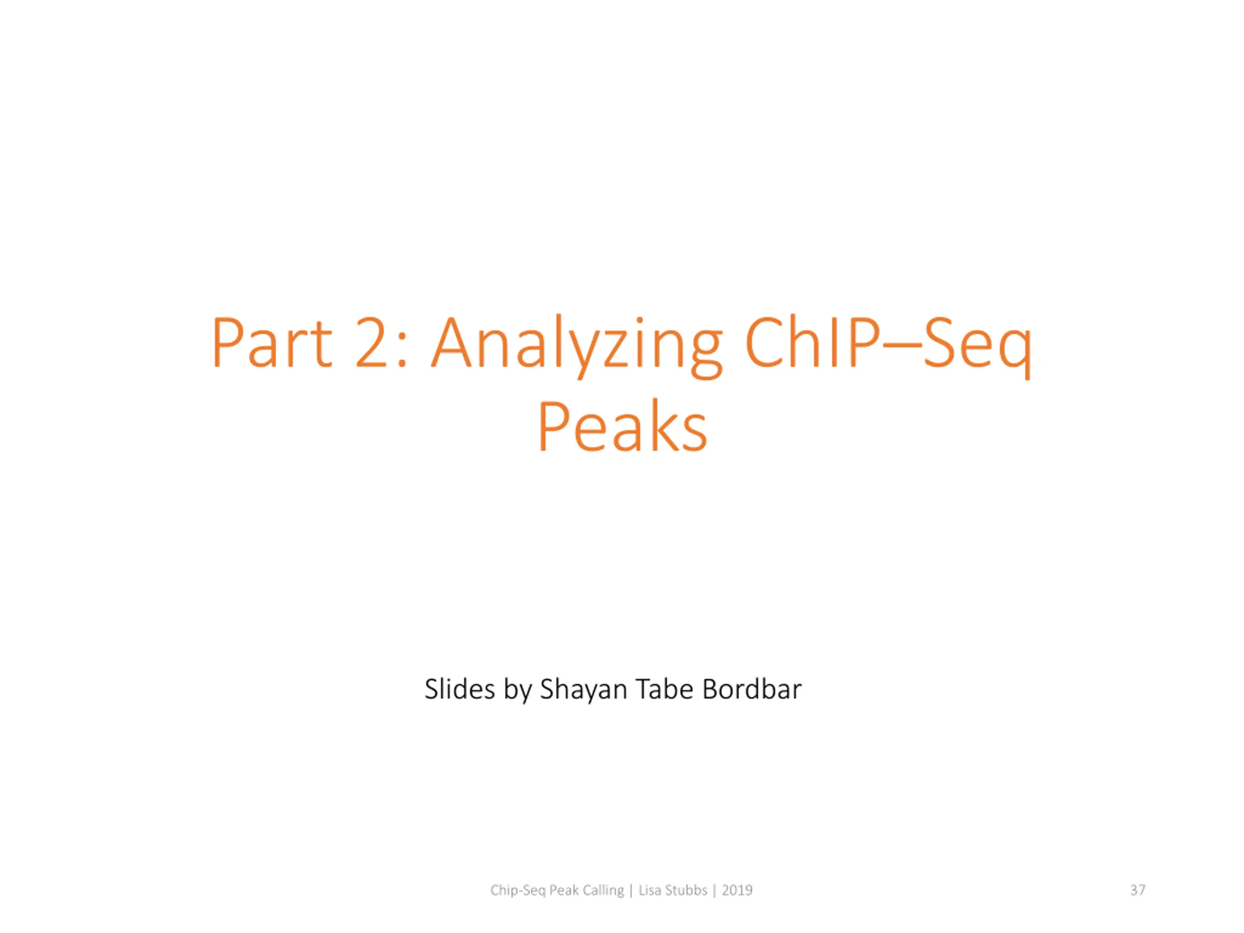 Part 2: Analyzing ChIPSeq Peaks Slides by Shayan Tabe Bordbar Chip-Seq Peak Calling | Lisa Stubbs | 2019 37