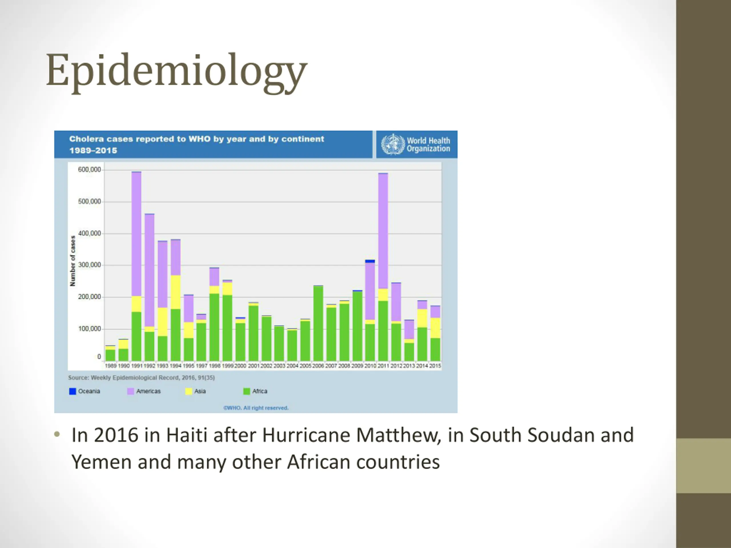 Epidemiology In 2016 in Haiti after Hurricane Matthew, in South Soudan and Yemen and many other African countries