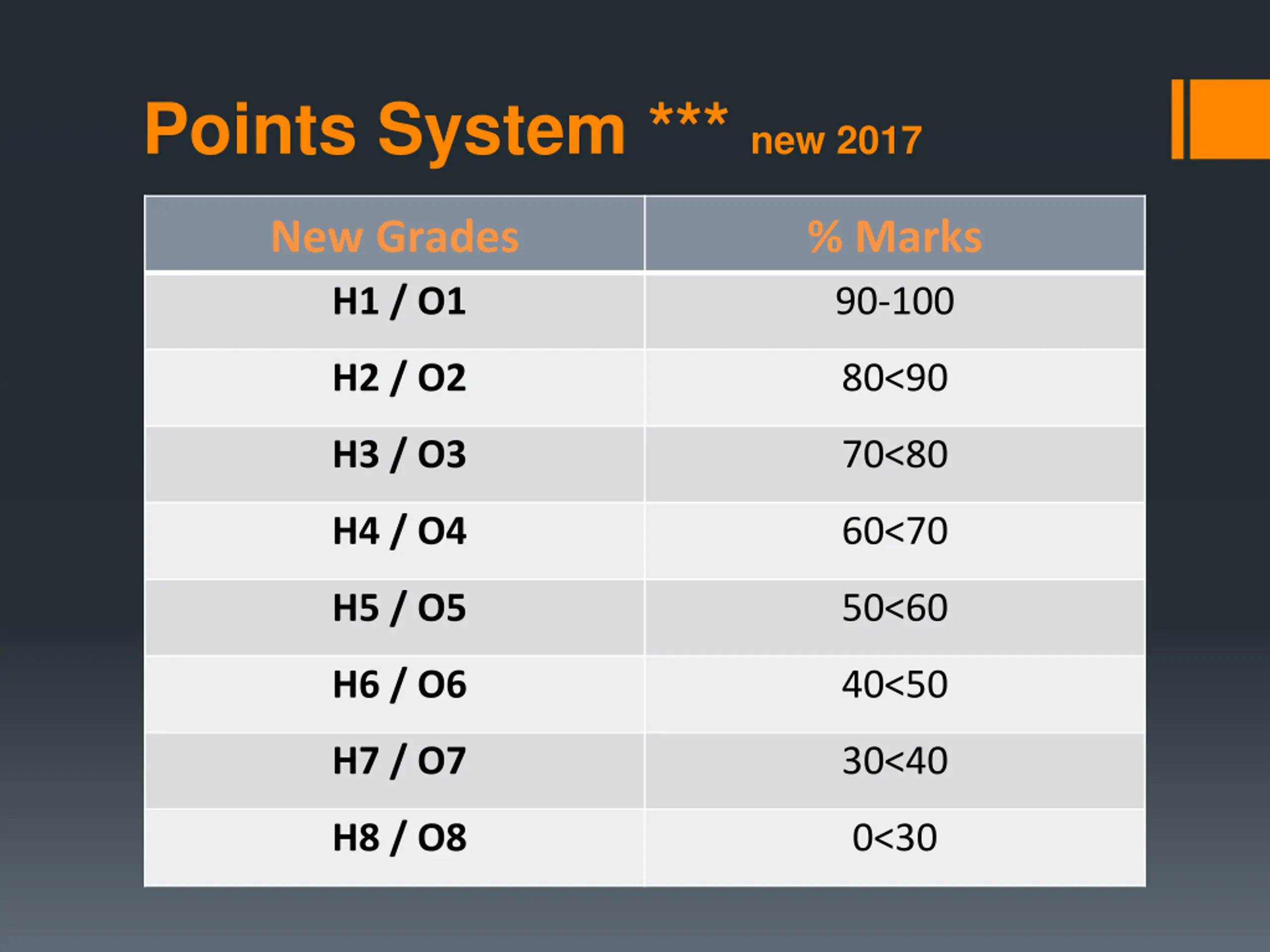 Points System *** new 2017 New Grades H1 / O1 % Marks 90-100 H2 / O2 80<90 H3 / O3 70<80 H4 / O4 60<70 H5 / O5 50<60 H6 / O6 40<50 H7 / O7 30<40 H8 / O8 0<30