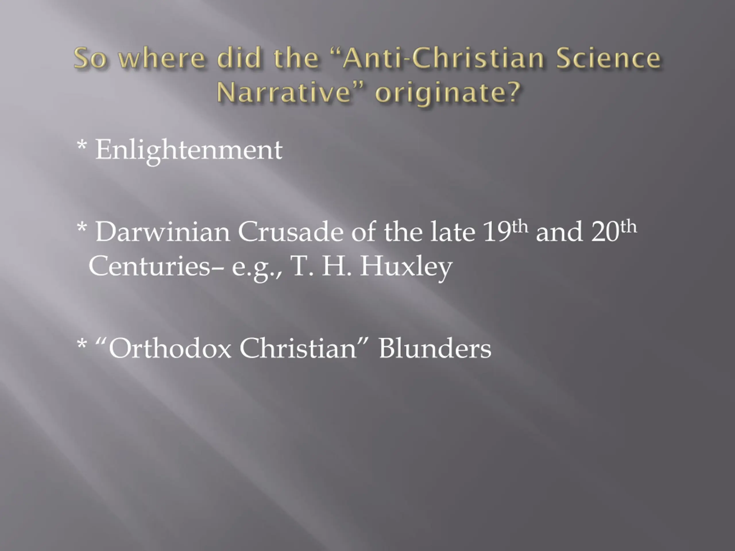 - * Enlightenment * Darwinian Crusade of the late 19thand 20th Centuries e.g., T. H. Huxley * Orthodox Christian Blunders