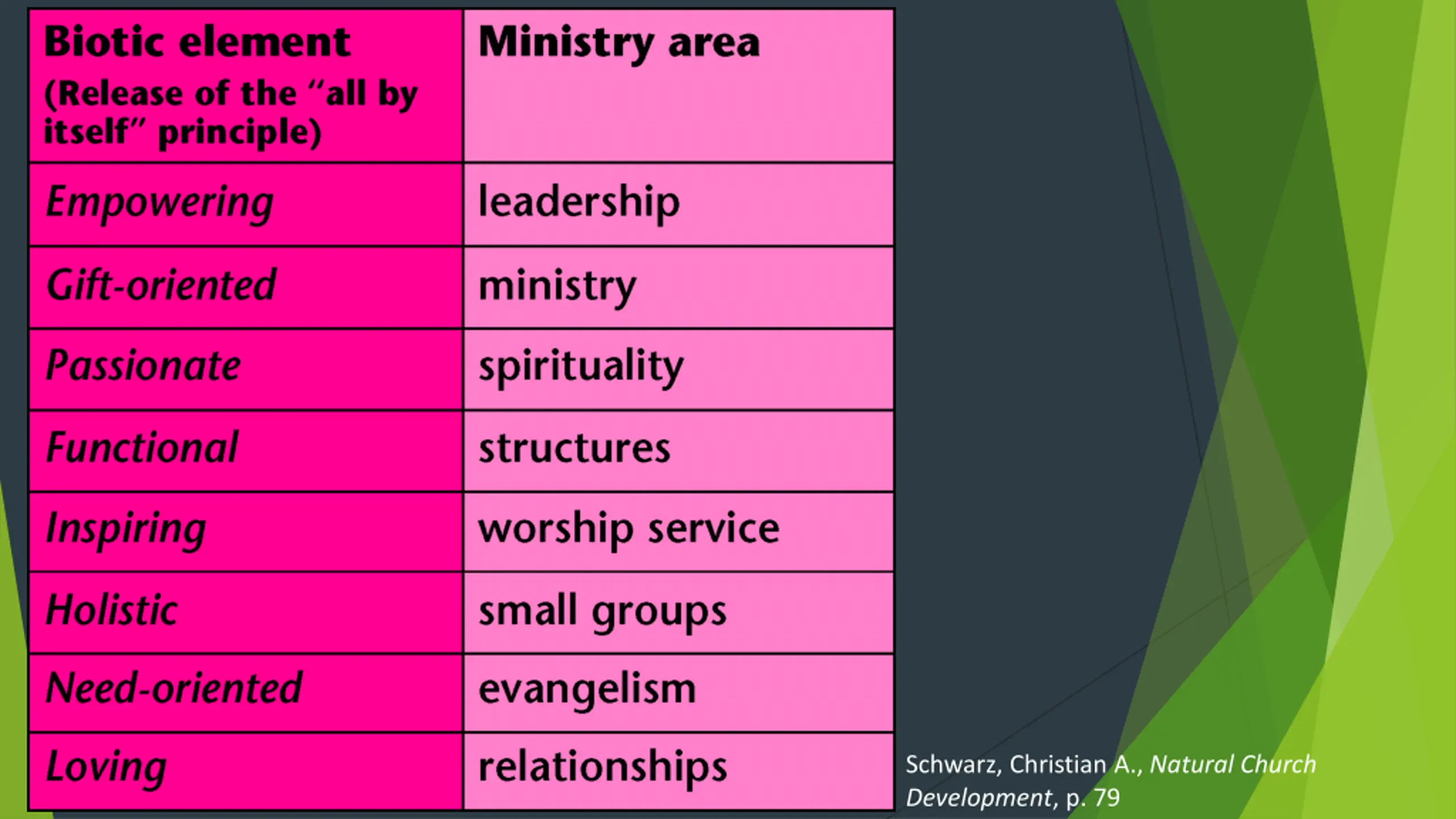 8 Vital Areas Schwarz, Christian A., Natural Church Development, p. 79