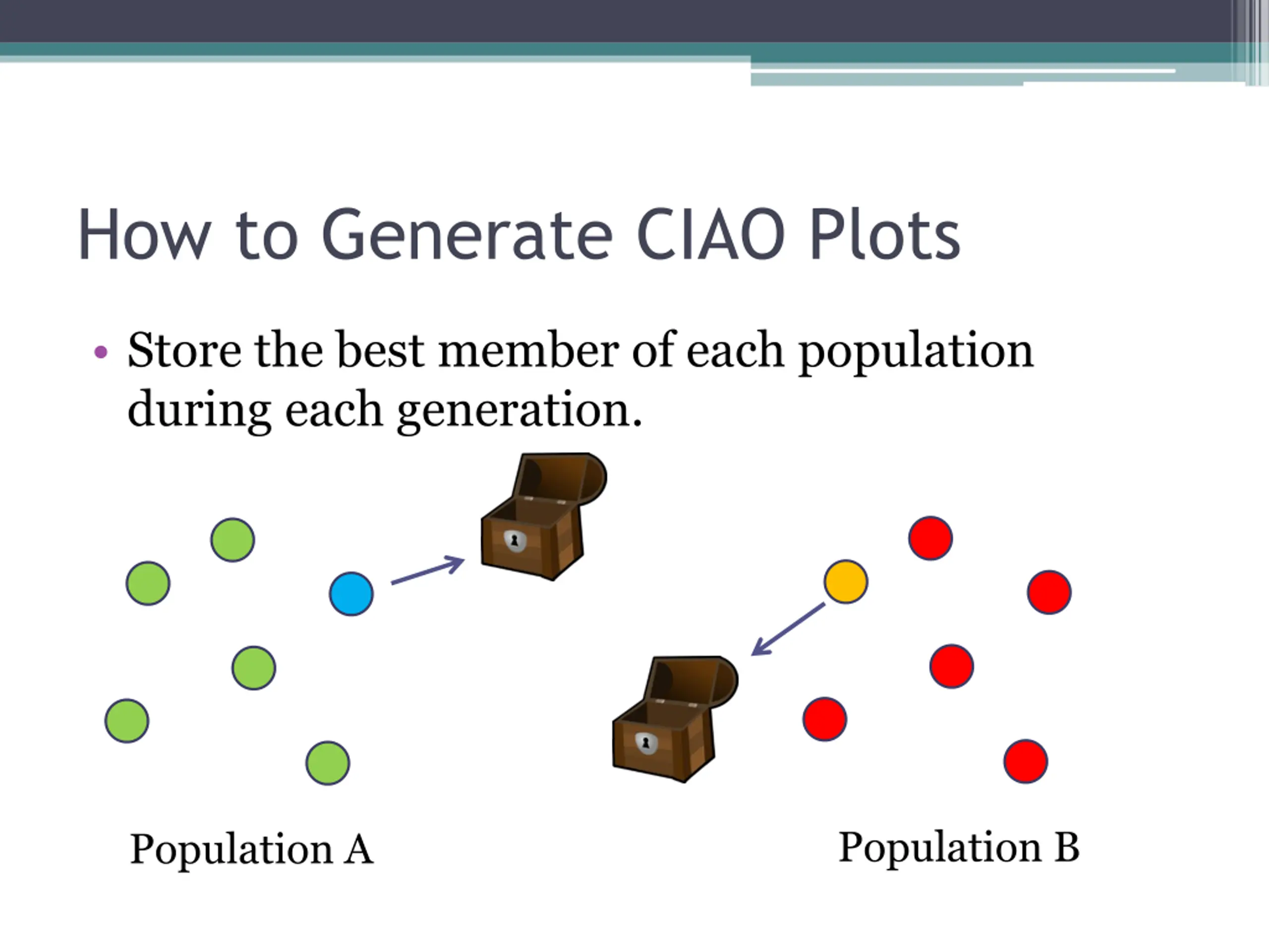 How to Generate CIAO Plots Store the best member of each population during each generation. Population B Population A