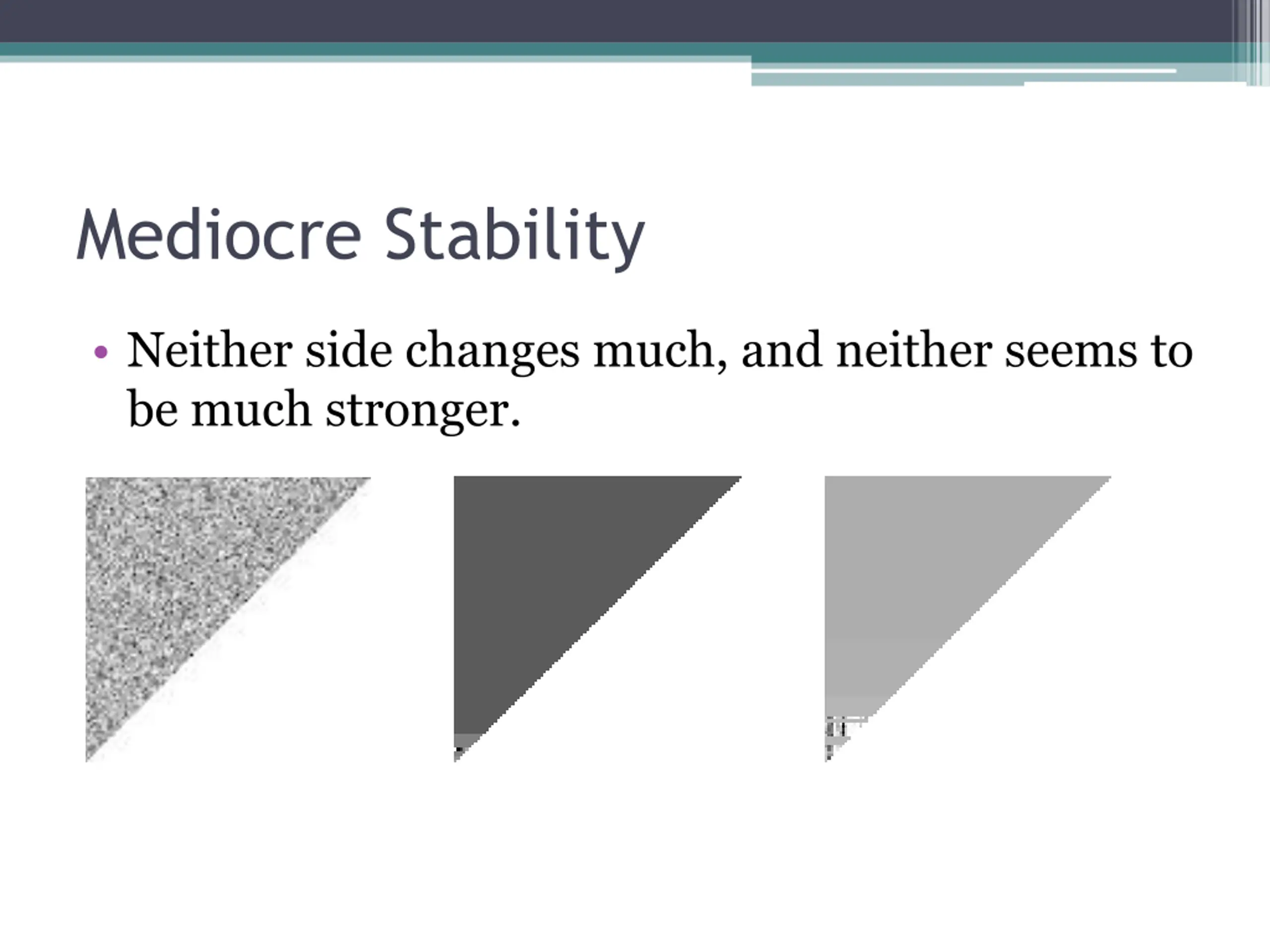 Mediocre Stability Neither side changes much, and neither seems to be much stronger.