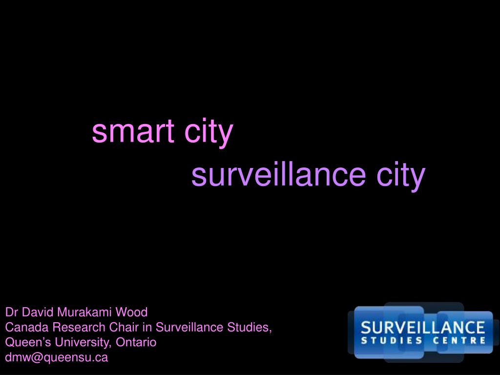 smart city surveillance city Dr David Murakami Wood Canada Research Chair in Surveillance Studies, Queen s University, Ontario dmw@queensu.ca