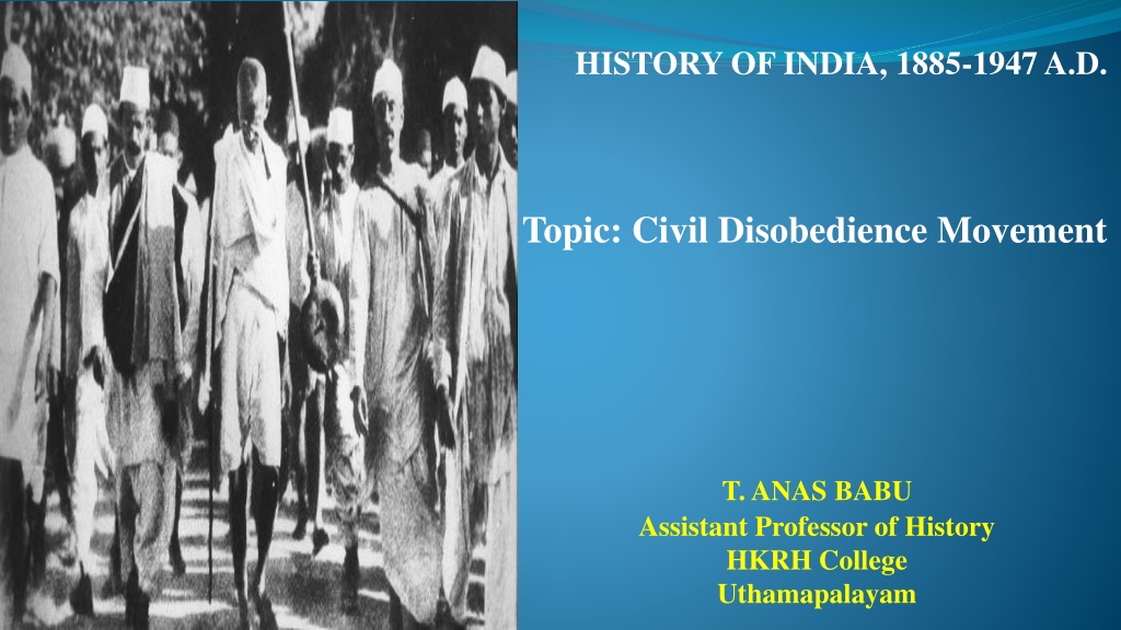 HISTORY OF INDIA, 1885-1947 A.D. Topic: Civil Disobedience Movement T. ANAS BABU Assistant Professor of History HKRH College Uthamapalayam