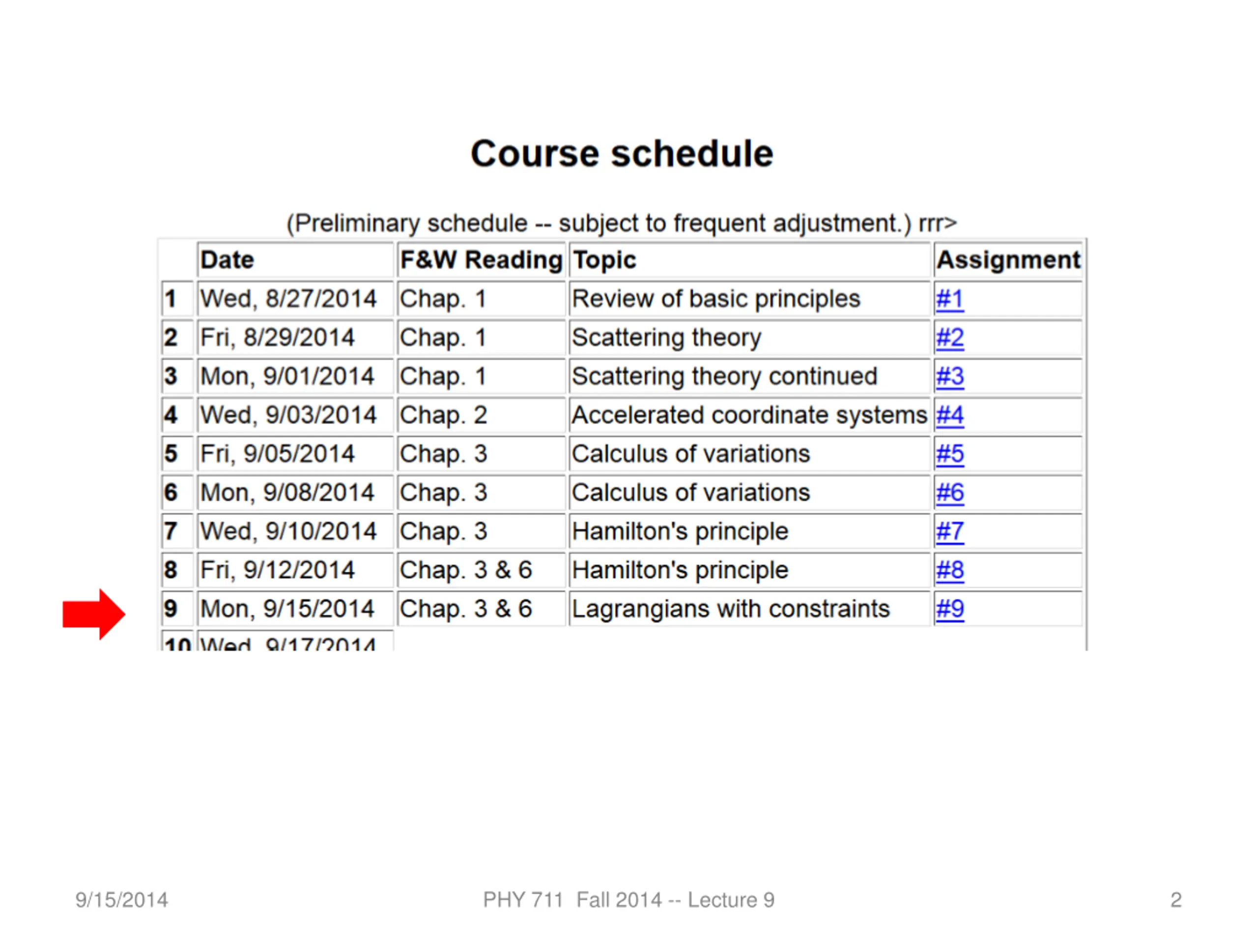 9/15/2014 PHY 711 Fall 2014 -- Lecture 9 2