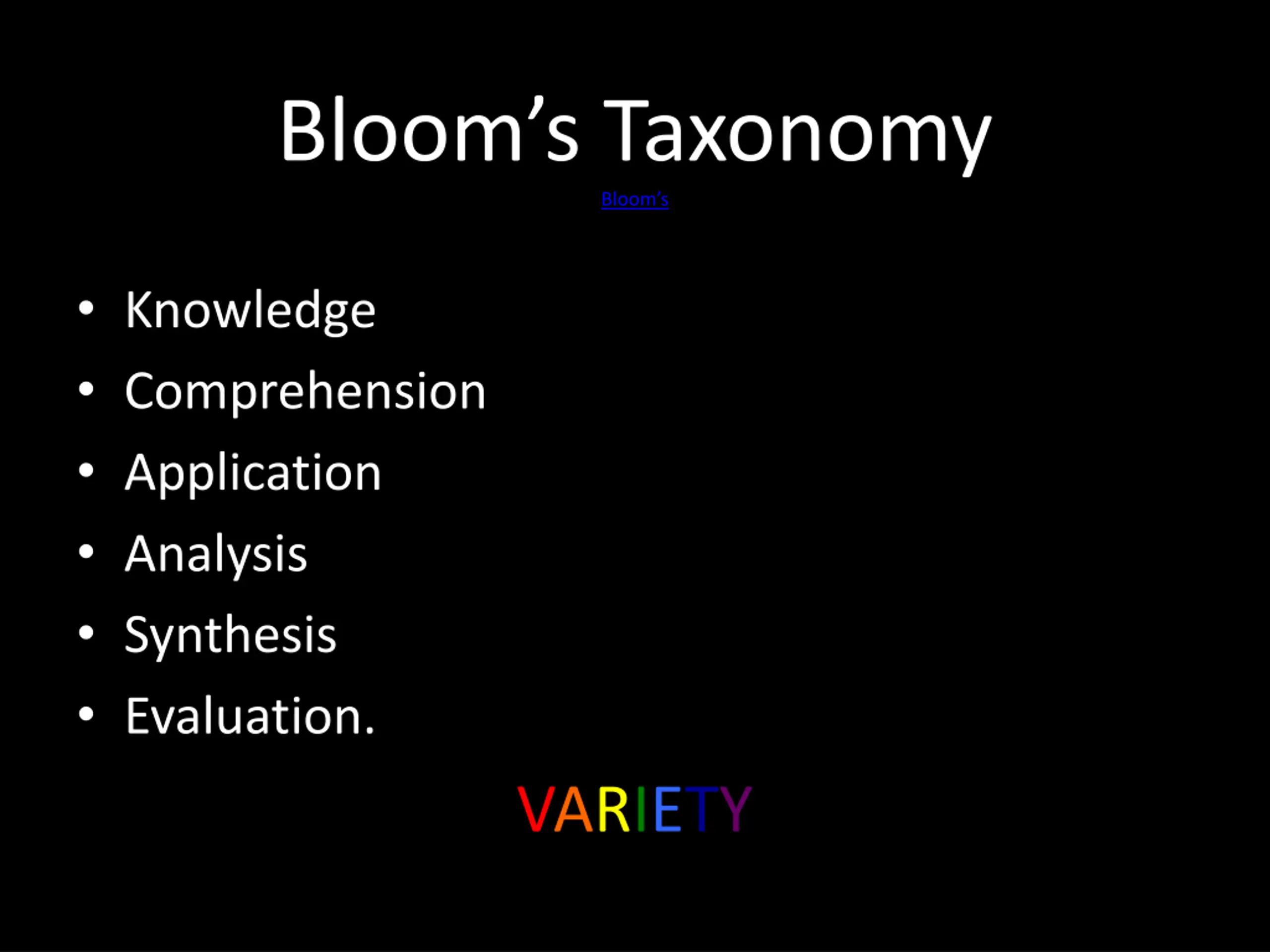 Blooms Taxonomy Bloom s Knowledge Comprehension Application Analysis Synthesis Evaluation. VARIETY