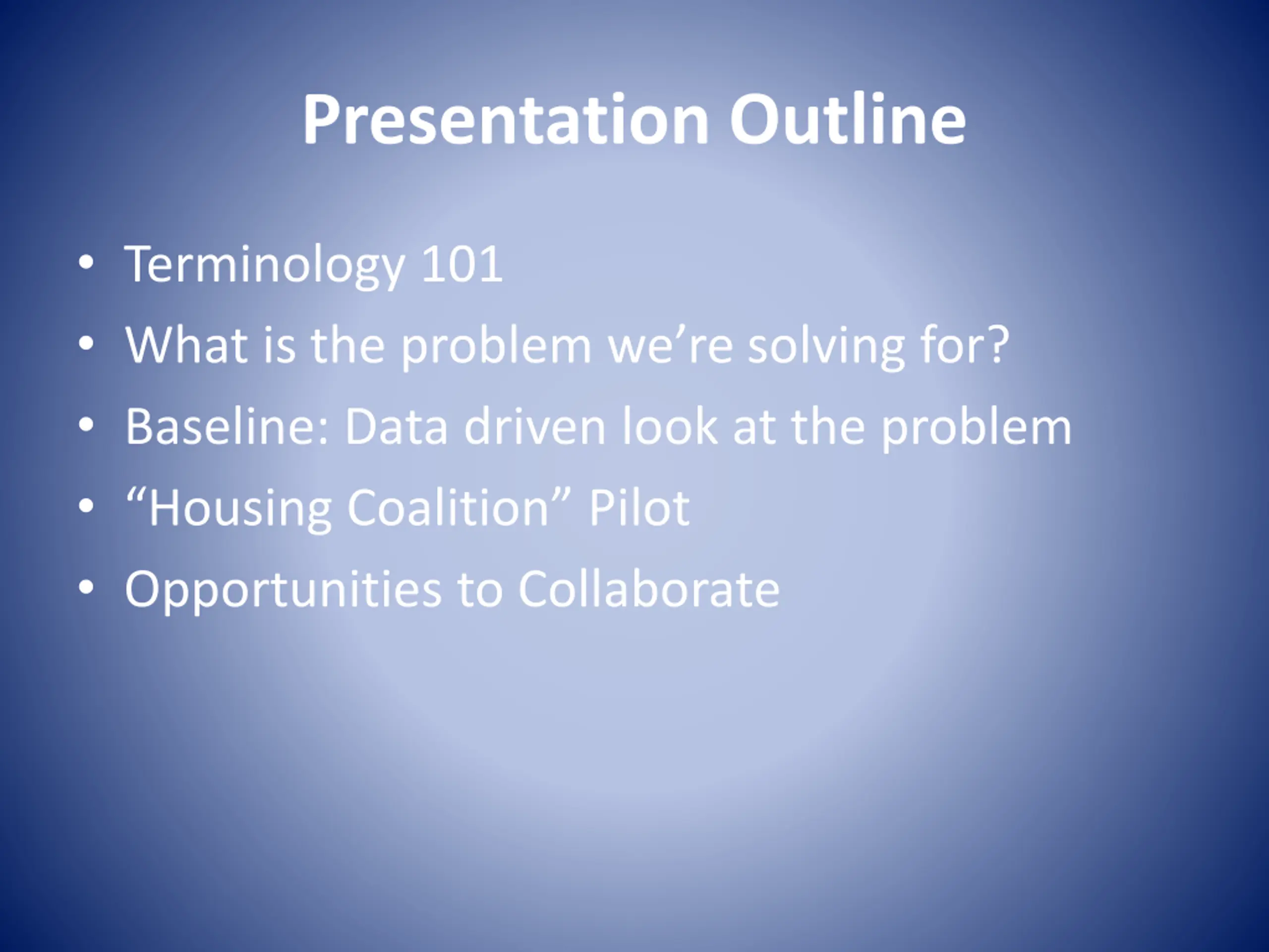 Presentation Outline Terminology 101 What is the problem we re solving for? Baseline: Data driven look at the problem Housing Coalition Pilot Opportunities to Collaborate