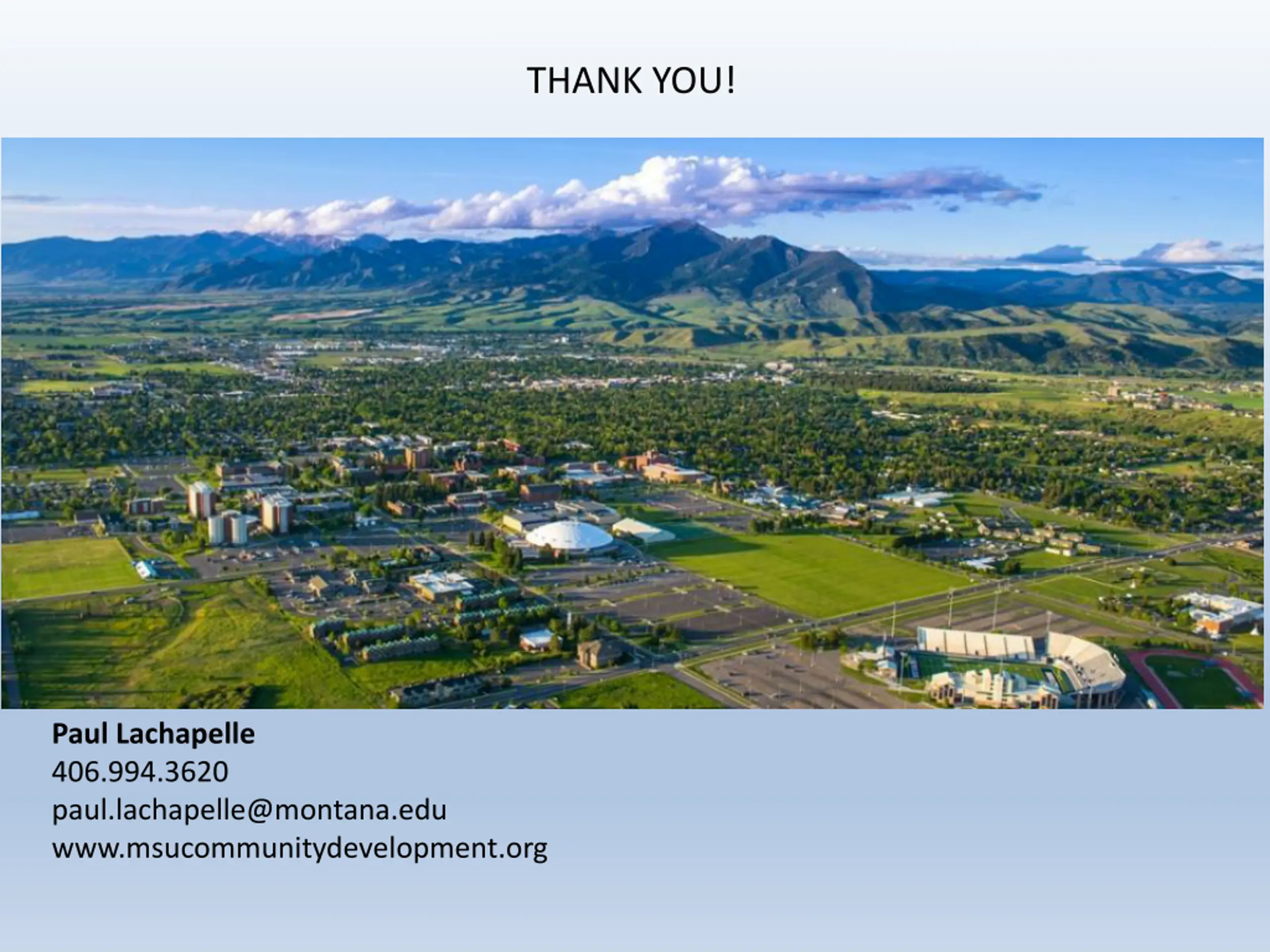 THANK YOU! Paul Lachapelle 406.994.3620 paul.lachapelle@montana.edu www.msucommunitydevelopment.org