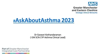 This clinical audit presentation showcases the national results of how Emergency Departments (EDs) are performing against the established audit standards for moderate to acute severe asthma in the year 2016/17. The objectives of the audit were to benchmark current performance, enable national and peer-to-peer comparisons, identify areas for improvement, and compare against previous performance in 2009/10 and 2013/14. The audit standards cover aspects such as oxygen therapy, vital signs monitoring, bronchodilator administration, steroid and magnesium sulfate usage, psychosocial considerations, and discharge protocols. The presentation includes information on national findings and executive summary graphs indicating the median national performance against the audit standards.