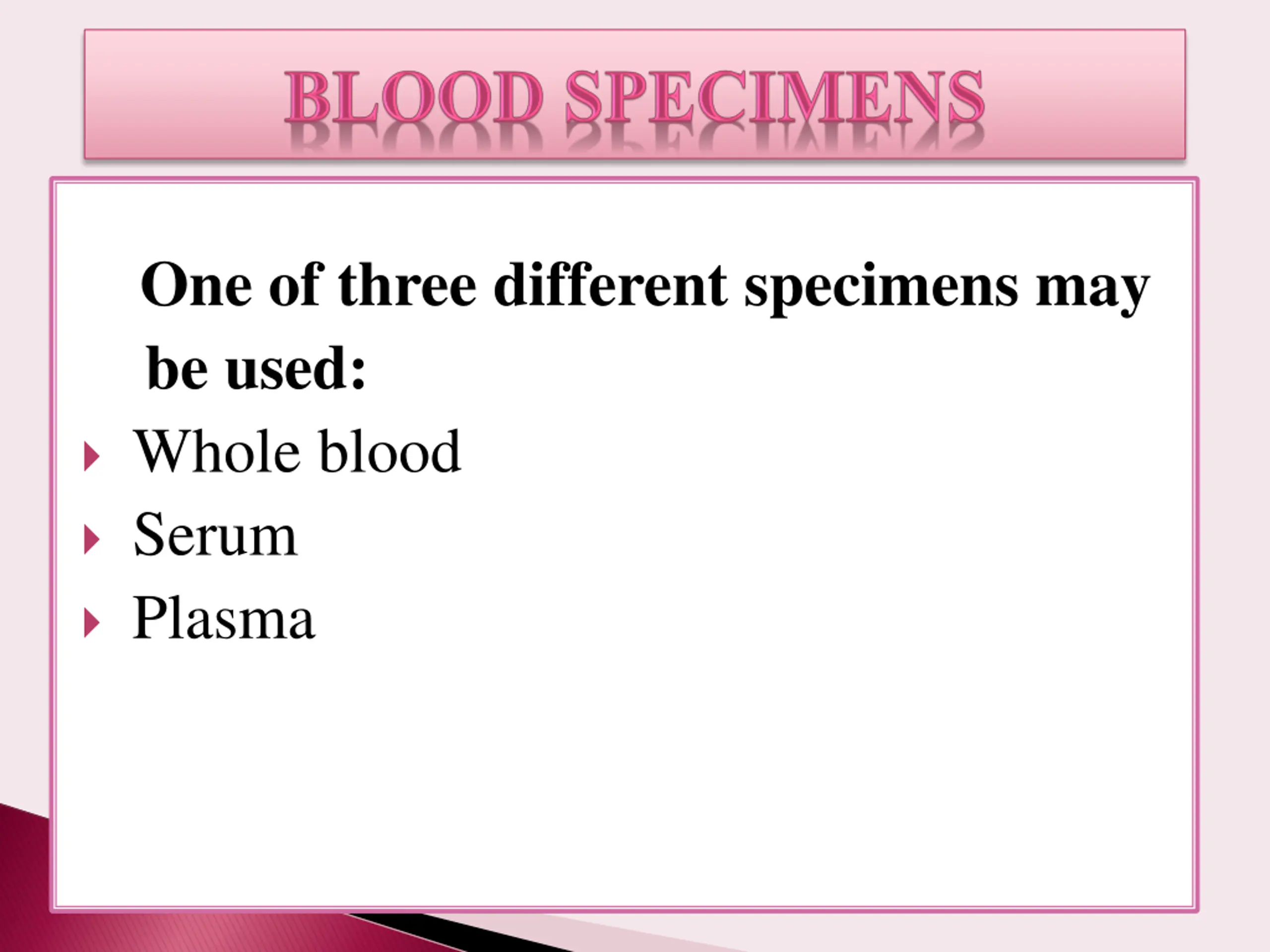 Plasma : obtained by centrifuging the whole blood collected with an anticoagulant Plasma is employed for the parameters fibrinogen, glucose,bicarbonate, chloride, ascorbic acid etc.