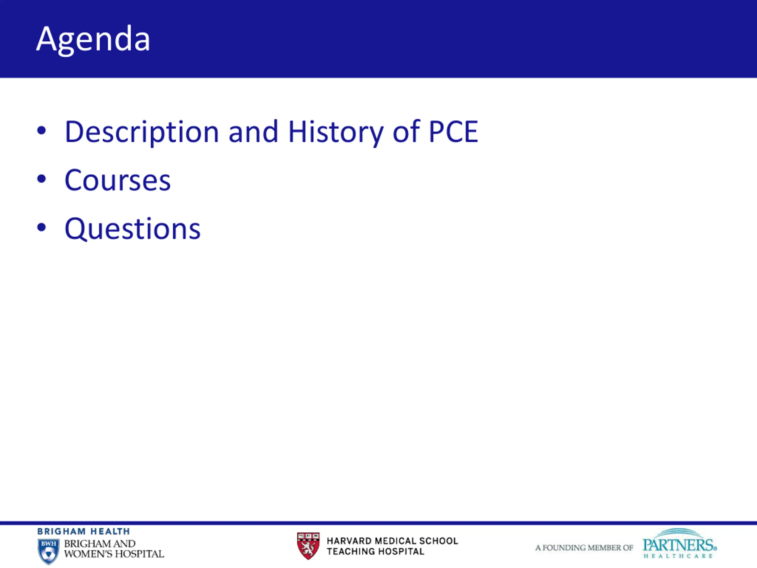 2 Agenda Description and History of PCE Courses Questions