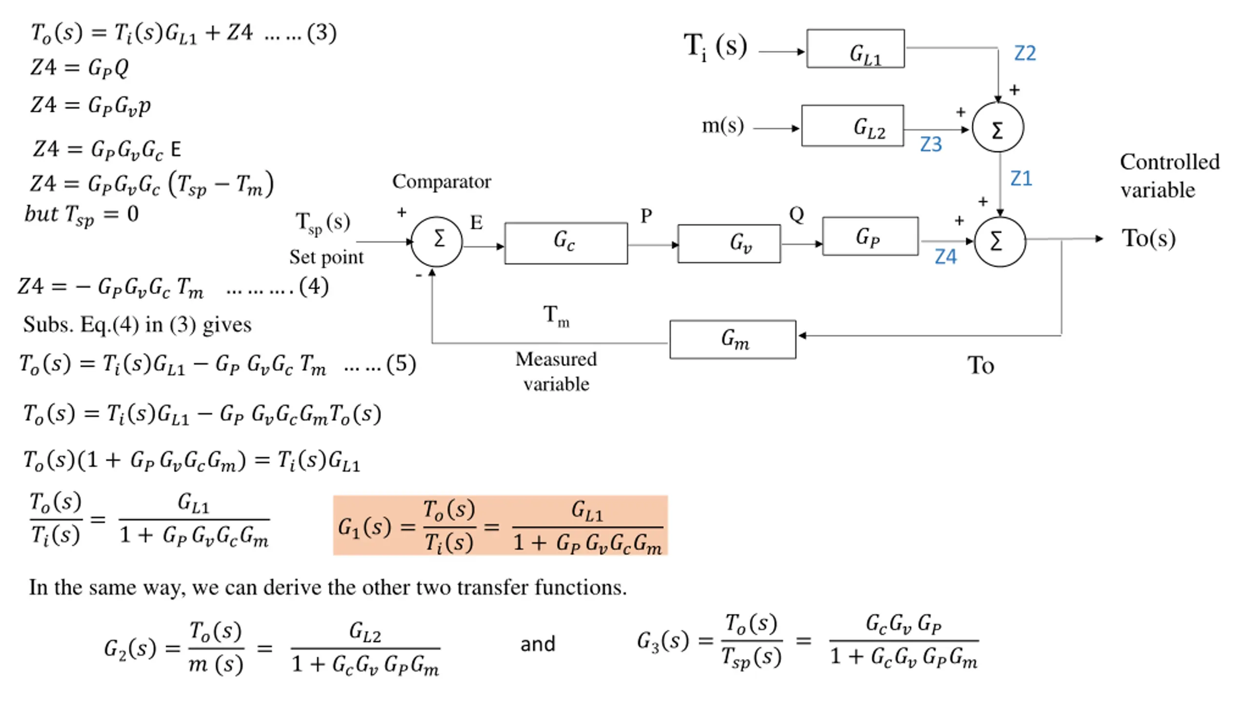 Transfer function of closed loop The transfer function of a closed system depends mainly upon Load variables and set point Type equation here.Referring to the previous example of CSTH, we can construct three transfer functions as follows ?1? =??(?) ,?2? =??(?) ?3? =??(?) ??(?) ? (?) , ???(?)
